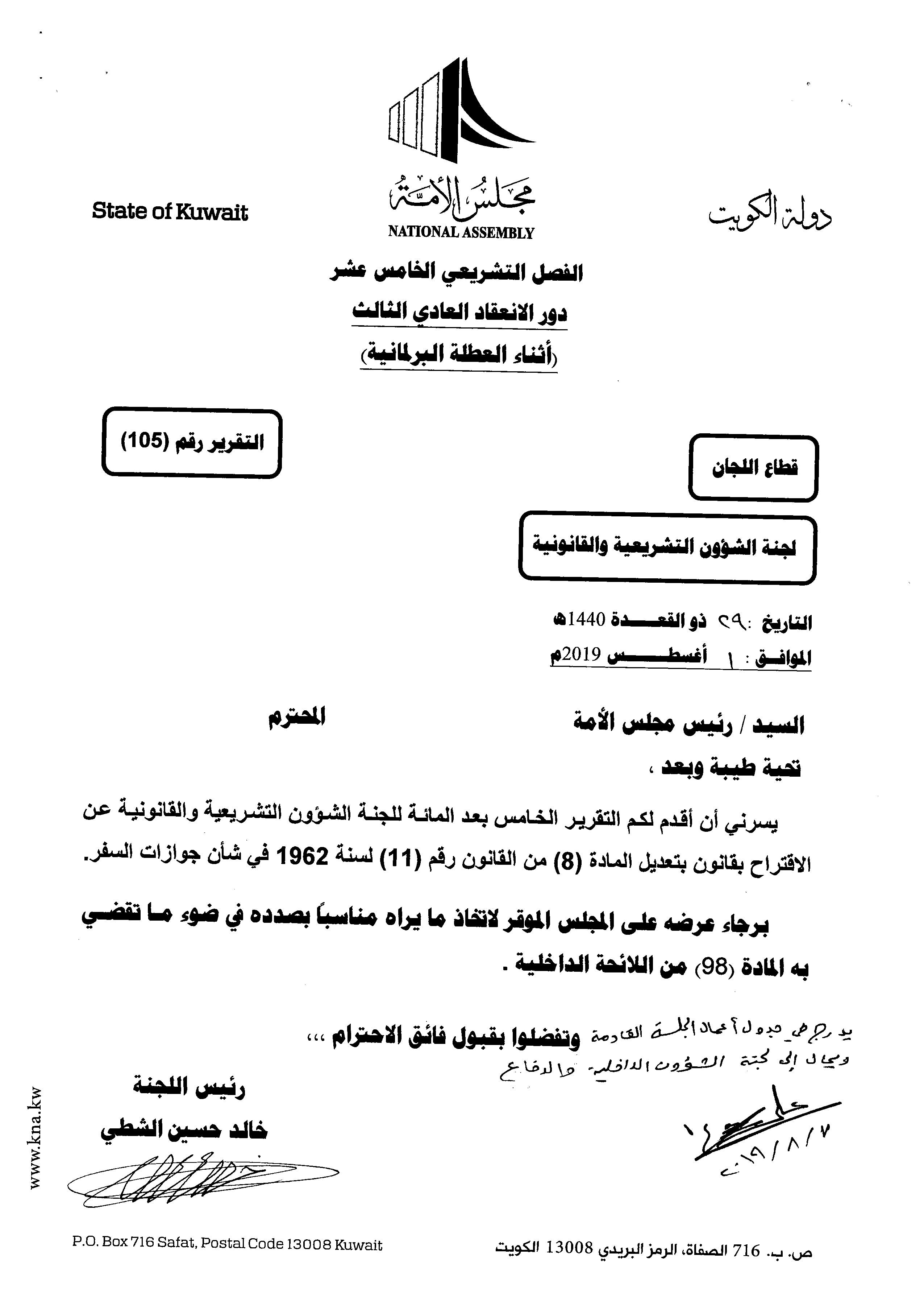 في وقت أراد النائب خالد الشطي نفي خبر "الجريدة"، بشأن منح الأزواج (الذكور) والأولاد القصر، للمرأة من اعضاء الاسرة الحاكمة واعضاء مجلس الامة، وذلك من باب مساواة النساء من اعضاء هاتين الفئتين بالرجال، أكد الشطي خبر "الجريدة"، بأن الامر أتى من باب تحقيق العدل والمساواة بين الرجال والنساء من أعضاء الفئتين، بأن يمنح الزوج واولاده، جوازات خاصة في حالة كانت الزوجة من الاسرة الحاكمة او عضوة في مجلس الامة.وتؤكد "الجريدة" دقتها في نقل الخبر، وانها لم تذكر ان اللجنة اجتمعت في الفترة القريبة الماضية، انما ذكرت ان اللجنة وافقت على الاقتراح ونشرت تقرير اللجنة، لذا اقتضى التنويه. وقال الشطي في تصريحه: نشرت احدى الصحف المحلية خبرا بشأن لجنة الشؤون التشريعية البرلمانية، "بأن اجتمعت وقررت جوازات خاصة لازواج وابناء الاسرة الحاكمة واعضاء مجلس الامة"، مضيفا "الخبر غير دقيق وغير صحيح، انما الاجتماع كان منذ شهر ونصف او شهرين، وكان على موضوع اخر، من باب تحقيق العدل والمساواة، اي ان موضوع زوجات اعضاء الاسرة الحاكمة واعضاء مجلس الامة بشأن تمتعهن بالجوازات الخاصة موجود منذ عام 1962، وليس هناك شيء جديد في هذه المسألة".