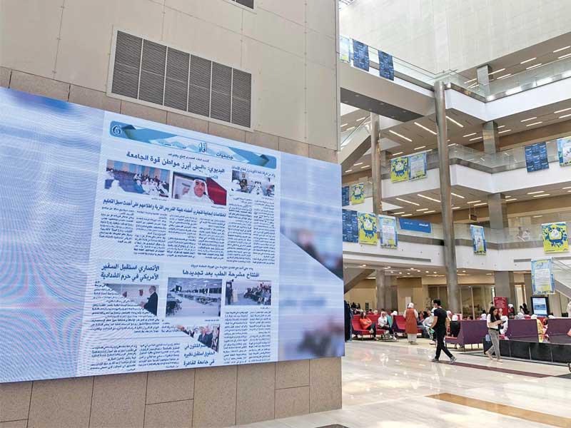 أطلقت جريدة آفاق الجامعية، أمس، شاشات إلكترونية في مختلف كليات جامعة الكويت بموقع «الشدادية» لعرض أخبارها الجامعية، بشكل يومي، إضافة إلى عددها الذي يصدر أسبوعيا، بحلته الجديدة، تزامناً مع الانتقال إلى «الشدادية».وأكد المستشار الإعلامي لـ«آفاق الجامعية» طارق الإدريس أن فكرة طرح الشاشات جاءت بالتنسيق مع مختلف قطاعات الجامعة، التي تعمل على عملية الانتقال إلى «الشدادية»، مضيفاً: «طرحنا هذه الفكرة لمواكبة المستقبل الإعلامي في عملية نشر الأخبار وإيصالها إلى الطلبة بشكل أسرع، عبر حضورهم إلى مواقع دراستهم، وأيضا معرفتهم آخر التطورات الجامعية».
