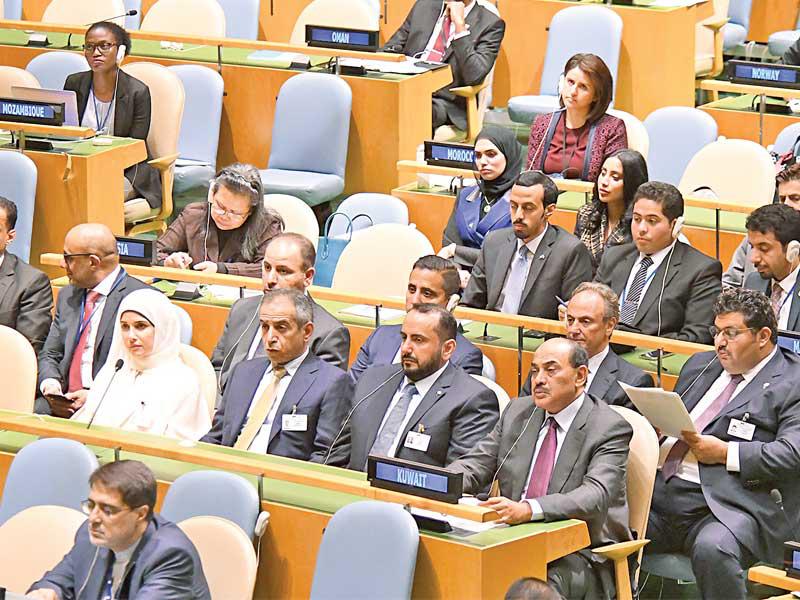 وجدد موقف الكويت من أنه لا حل عسكرياً لهذه الأزمة، كما جدد الاستعداد لاستضافة اليمنيين لعقد جولة مشاورات أخرى في الكويت تحت رعاية الأمم المتحدة.وطالب ممثل الأمير بحل سياسي ينهي الأزمة السورية القائمة، فضلاً عن ضرورة وقف جميع الممارسات الإسرائيلية التي تمس بالمقدسات الدينية، وكذلك الحد من أنشطتها الاستيطانية على الأراضي الفلسطينية المحتلة، ودعا إلى بذل الجهود من أجل إعادة إطلاق المفاوضات الجادة ضمن جدول زمني محدد للوصول إلى السلام العادل والشامل.ودعا ممثل الأمير إيران إلى اتخاذ التدابير الجادة الكفيلة ببناء الثقة وترسيخ قواعد حسن الجوار الواردة في ميثاق الأمم المتحدة .وأضاف أن ذلك يأتي للبدء في حوار مبني على احترام سيادة الدول وعدم التدخل في شؤونها الداخلية وتخفيف حدة التوتر في الخليج والحفاظ على سلامة الملاحة البحرية.وفيما يلي نص كلمة ممثل صاحب السمو:السيد الرئيس السلام عليكم ورحمة الله وبركاتهيطيب لي بداية أن أتقدم بخالص التهنئة لشخصكم الكريم ولجمهورية نيجيريا الاتحادية الصديقة لانتخابكم رئيساً للدورة الرابعة والسبعين للجمعية العامة للأمم المتحدة، مؤكداً لكم دعمنا الكامل لكل ما من شأنه تسهيل مهام أعمالكم. وأود كذلك أن أنتهز هذه المناسبة لأعرب عن خالص التقدير للجهود البارزة التي بذلتها سلفكم خلال ترؤسها أعمال الدورة السابقة.ولا يفوتني في هذا المقام إلا أن أشيد بالجهود الكبيرة التي يبذلها معالي الأمين العام للأمم المتحدة في قيادة هذه المنظمة العريقة.إن المتتبع لمسيرة عمل الأمم المتحدة طوال أكثر من سبعة عقود سيخلص إلى نتيجة رئيسية مفادها بأنها تعاملت وعالجت العديد من التحديات الجسيمة والأزمات المزمنة التي واجهها العالم بوصفها الملاذ الآمن لإنهاء الخلافات وتغليب منطق السلم والحوار القائم على الدبلوماسية حماية للأجيال القادمة من ويلات النزاعات والحروب.