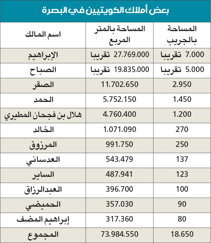 أسرة الصقر تحتفظ بحجج شرعية تخص ممتلكاتها العقارية في الفاو والبصرة وعدة أماكن أخرى