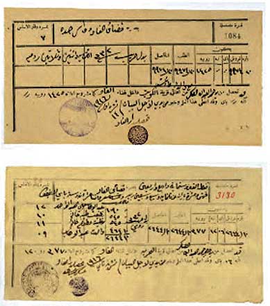تبين الوصولات الآتية شكل الاستثمارات ونظام التسجيل والتوثيق في الإدارة العثمانية في ذلك الوقت، وتبين أسماء القرى العراقية في شبه جزيرة الفاو التي امتلك الصقر فيها أراضي وكانت له تعاملات تجارية.