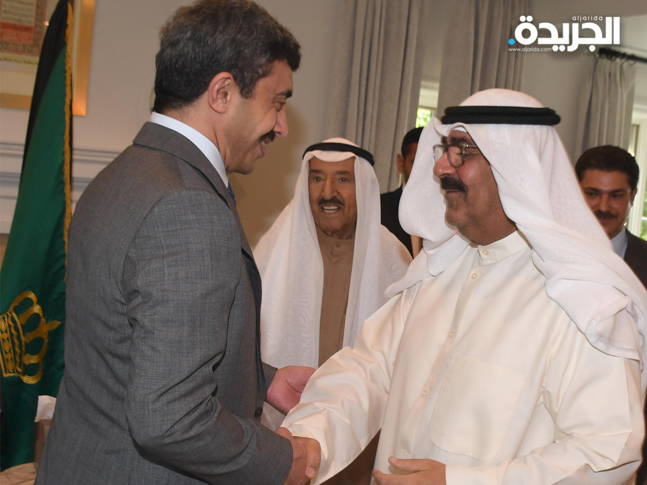 استقبل حضرة صاحب السمو أمير البلاد الشيخ صباح الأحمد الجابر الصباح حفظه الله ورعاه ظهر اليوم وبحضور معالي نائب رئيس الحرس الوطني الشيخ مشعل الأحمد الجابر الصباح استقبل سموه رعاه الله الوزير المسؤول عن الشؤون الخارجية بسلطنة عمان الشقيقة يوسف بن علوي بن عبدالله وسمو الشيخ عبدالله بن زايد آل نهيان وزير الخارجية والتعاون الدولي في دولة الامارات العربية المتحدة الشقيقة ووزير خارجية مملكة البحرين الشقيقة الشيخ خالد بن احمد ال خليفة وذلك في مقر إقامة سموه بالولايات المتحدة الأمريكية.هذا وقد اطمأنوا على صحة سموه حفظه الله وعلى نتائج الفحوصات الطيبة والتي تكللت نتائجها بفضل الله تعالى ومنته بالتوفيق والنجاح.