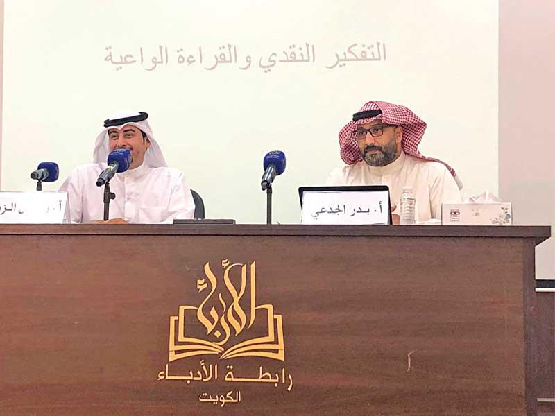 أطلق نادي القراءة في رابطة الأدباء الكويتيين أول أنشطته الثقافية من خلال محاضرة بعنوان "التفكير النقدي والقراءة الواعية" قدمها المدرس المساعد في قسم اللغة الإنكليزية بكلية التربية الأساسية بدر الجدعي، وأدارها باسل الزير.وقال رئيس نادي القراءة عذبي العثمان خلال المحاضرة، إن النادي يهدف إلى رفع مستوى القراء، وتعزيز ثقافة الاختلاف والحوار.وأضاف العثمان أن أنشطة النادي سوف تتنوع بين جلسات لمناقشة الكتب، ومحاضرات تختص بالقراءة عموماً أو الكتب، وأيضاً حلقات نقاشية في موضوعات محددة، إضافة إلى تنظيم دورات في القراءات النقدية ومهارات القراءة.