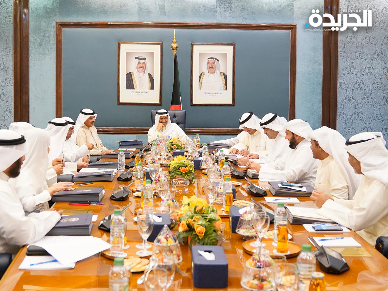 عقد مجلس الوزراء اجتماعه الاسبوعي بعد ظهر اليوم في قصر بيان برئاسة سمو الشيخ جابر المبارك الحمد الصباح رئيس مجلس الوزراء وبعد الاجتماع صرح نائب رئيس مجلس الوزراء ووزير الدولة لشؤون مجلس الوزراء أنس خالد الصالح بما يلي: عبر سمو رئيس مجلس الوزراء بإسمه وبإسم إخوانه الوزراء في مستهل الاجتماع عن عميق الارتياح والسرور لعودة حضرة صاحب السمو الأمير حفظه الله ورعاه الشيخ صباح الأحمد الجابر الصباح لوطنه يوم الأربعاء الماضي مشافا معافى بعد استكمال الفحوصات الطبية الناجحة في الولايات المتحدة الامريكية بعد أن من الله جلت قدرته على سموه حفظه الله ورعاه باكتمال الشفاء متضرعين إلى المولى القدير أن يحرس سموه بفيض عنايته وأن يمتعه بموفور الصحة والعافية ويمد في عمره وأن يحفظه سندا وذخرا لوطنه وشعبه.كما احيط المجلس علما بتشكيل الوفد الرسمي المرافق لسمو الشيخ جابر مبارك الحمد الصباح رئيس مجلس الوزراء في زيارته الرسمية إلى القاهرة بجمهورية مصر العربية وذلك خلال الفترة من 20 ـ 21/10/2019 والذي يضم كلا من (الشيخ صباح خالد الحمد الصباح نائب رئيس مجلس الوزراء ووزير الخارجية وأنس خالد ناصر الصالح نائب رئيس مجلس الوزراء ووزير الدولة لشؤون مجلس الوزراء وخالد ناصر عبدالله الروضان وزير التجارة والصناعة ووزير الدولة لشؤون الخدمات والدكتور خالد علي محمد الفاضل وزير النفط ووزير الكهرباء والماء وكبار المسؤولين في ديوان سمو رئيس مجلس الوزراء والجهات المعنية).