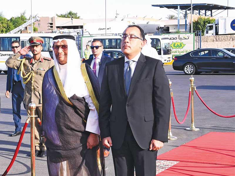 وقال سموه، إنه يتطلع إلى لقاء الرئيس السيسي لينقل إليه تحيات صاحب السمو وسمو ولي العهد وتمنياتهما لمصر وشعبها بمزيد من التقدم والازدهار ويستمع إلى رؤية الرئيس المصري تجاه العديد من القضايا الإقليمية والدولية.وأشار إلى أن مباحثاته مع رئيس مجلس الوزراء د. مصطفى مدبولي ستتناول سبل تطوير العلاقات الثنائية بين البلدين وتعزيز التعاون في كافة المجالات التي تحقق مصالح الشعبين الشقيقين إضافة إلى القضايا الإقليمية والدولية ذات الاهتمام المشترك. وكان المبارك وصل والوفد الرسمي المرافق له إلى القاهرة، أمس، وكان في مقدمة مستقبليه لدى وصوله إلى مطار القاهرة الدولي نظيره المصري. وجرت لسموه مراسم الاستقبال الرسمية، إذ عُزف السلامان الوطني الكويتي والمصري، ثم أدى حرس الشرف التحية وأعقب ذلك مصافحة المبارك الوزراء وكبار المسؤولين بمصر وسفير الكويت بالقاهرة محمد الذويخ ومندوب الكويت الدائم لدى جامعة الدول العربية أحمد البكر وأعضاء السفارة. وكان المبارك غادر البلاد، أمس، وكان في مقدمة مودعيه على أرض المطار نائب رئيس مجلس الأمة عيسى الكندري ونائب رئيس مجلس الوزراء ووزير الداخلية الشيخ خالد الجراح وعدد من اذلشيوخ والوزراء والمستشارين وكبار قادة الجيش والشرطة والحرس الوطني والإدارة العامة للاطفاء وكبار المسؤولين بالدولة وديوان رئيس مجلس الوزراء.