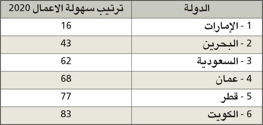 على الرغم من تحسّن الكويت في مؤشر سهولة ممارسة أنشطة الأعمال 2020، فإنها ما زالت في المركز الأخير خليجياً في المؤشر، في حين حققت السعودية ومملكة البحرين قفزات أكبر في هذا المؤشر.وبينت مصادر لـ «الجريدة» أن الكويت تحتاج الى المزيد من الإصلاحات مستقبلاً، وعملاً جاداً بصورة تشمل كافة الجهات، وذلك لتكون الرائدة في المنطقة لتترأس مؤشر سهولة الأعمال.وأوضحت المصادر أنه رغم وجود الكويت ضمن الدول التي سجلت ارتفاعاً، فإنه أتت في المرتبة السادسة والأخيرة خليجياً، ولتكون بالمركز 83 عالمياً، في حين جاءت الإمارات في المركز الأول خليجياً وعربياً، لتكون في المركز 16، أما البحرين فقد حظيت بالمركز الثاني بـ 43، والسعودية حلت ثالثاً بالمركز 62، في حين جاءت عمان في المركز الرابع بـ 68، أما قطر في المركز الخامس لتكون بالمرتبة 77 عالميا، والكويت حلّت اخيراً.