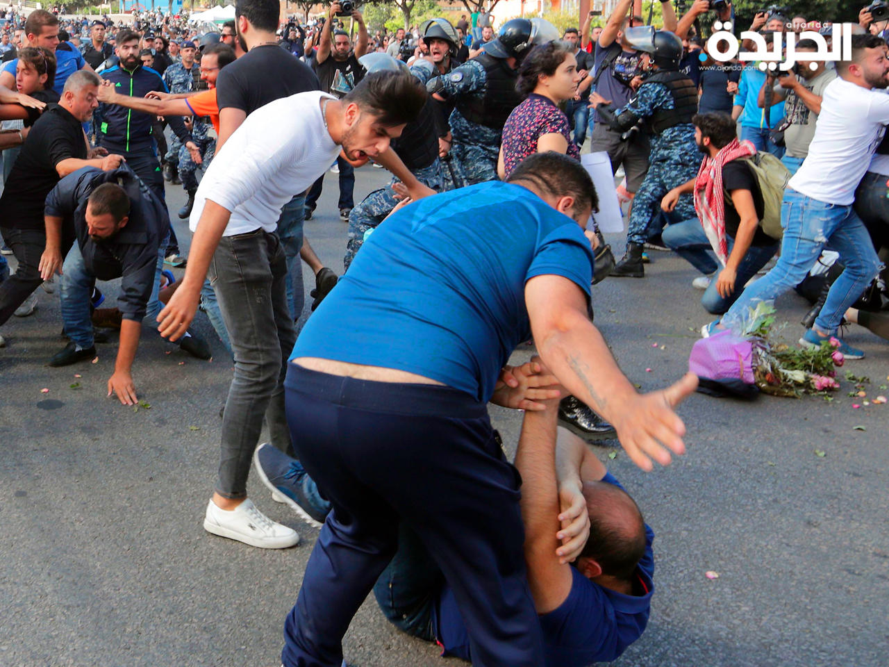 شهدت منطقة وسط بيروت اليوم الثلاثاء اعمال شغب ومواجهات بين مجموعات من المتظاهرين اللبنانيين وشبان محتجين على إقفال الطرقات.وقالت (الوكالة الوطنية للاعلام) اللبنانية الرسمية ان مجموعات من الشبان أقدموا على اقتلاع الخيم في ساحتي (رياض الصلح) و(الشهداء) في بيروت وتكسيرها وحرقها كما عملت على نزع اللافتات التي كتب عليها كلمة "ثورة" في وسط ساحة (الشهداء).