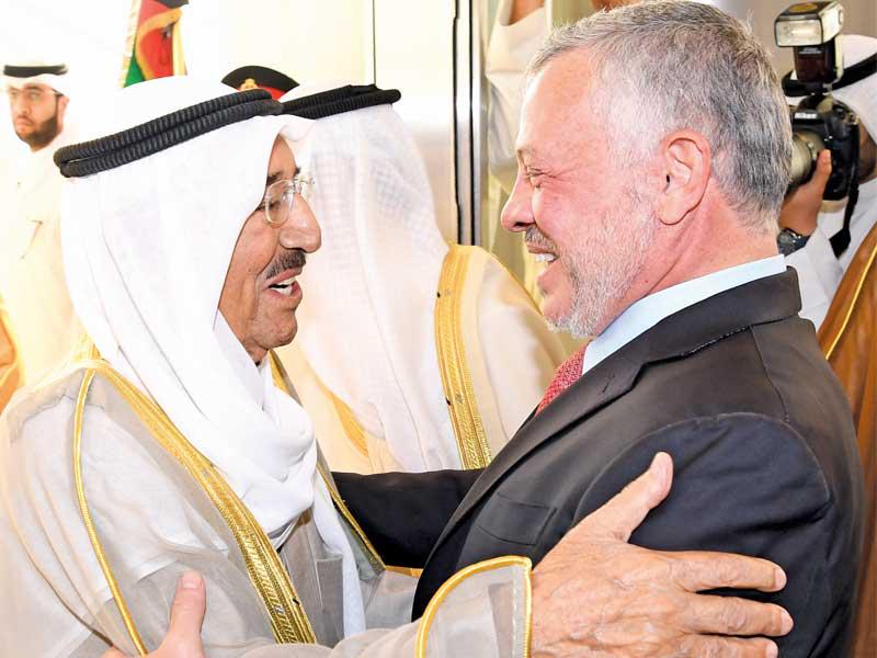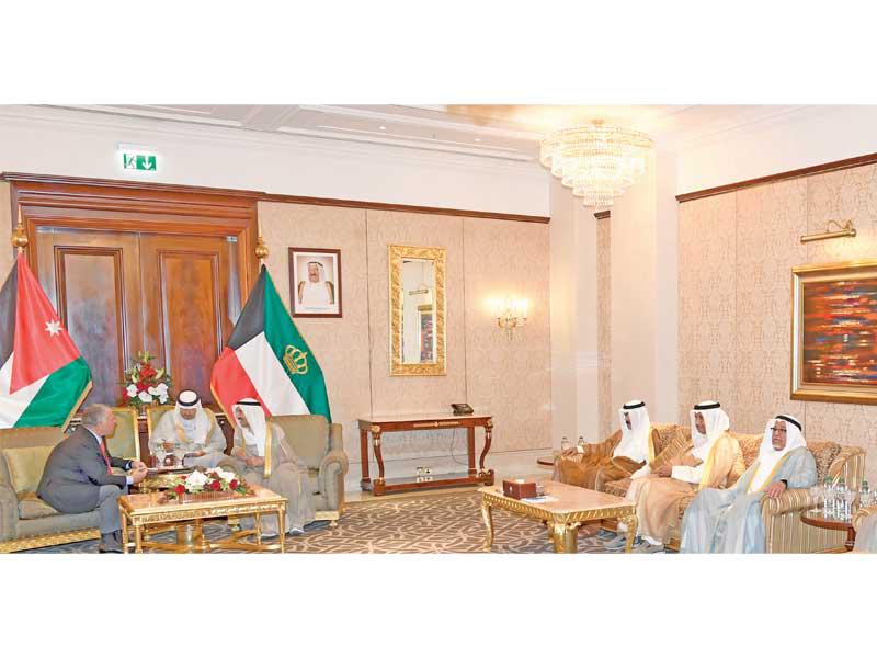 استقبل سمو امير البلاد الشيخ صباح الاحمد أمس العاهل الاردني الملك عبدالله الثاني والوفد المرافق له في زيارته القصيرة للبلاد. وعقدت المباحثات الرسمية حيث ترأس الجانب الكويتي صاحب السمو وبحضور سمو ولي العهد الشيخ نواف الاحمد ورئيس مجلس الوزراء سمو الشيخ جابر المبارك وكبار المسؤولين بالدولة، وعن الجانب الاردني الملك عبدالله وعدد من كبار المسؤولين.وصرح وزير شؤون الديوان الاميري الشيخ علي الجراح بأن المباحثات تناولت العلاقات الاخوية المتميزة التي تربط البلدين والشعبين الشقيقين، وسبل تعزيزها وتنميتها في المجالات كافة، وتوسيع اطر التعاون بينهما بما يخدم مصالحهما المشتركة، واهم القضايا ذات الاهتمام المشترك ودعم وحدة الصف ومسيرة العمل العربي المشترك، واخر المستجدات على الساحتين الاقليمية والدولية.وساد المباحثات جو ودي عكس روح الاخوة التي تتميز بها العلاقة بين البلدين الشقيقين ورغبتهما المشتركة في المزيد من التعاون والتنسيق على مختلف الصعد.
