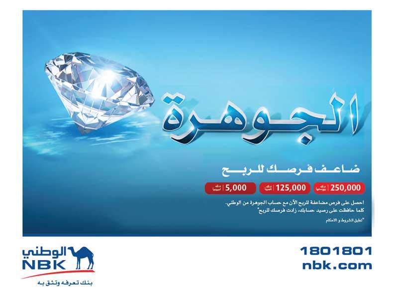 أجرى بنك الكويت الوطني إلى إجراء سحب الجوهرة الشهري لمبلغ 125.000 دينار، وسحب تحويل الراتب، وذلك مباشرة عبر إذاعة نبض الكويت FM 88.8، وبحضور ممثل عن وزارة التجارة والصناعة، إلى جانب ممثلي البنك.وأجري سحب تحويل الراتب «وطّن راتبك» الربع سنوي الثالث، وأُعلن اسم الفائز عبدالعزيز خالد عبدالعزيز الخليفة الذي حصل على راتبه مدة سنة، ثم أجري سحب الجوهرة الشهري الذي أسفر عن فوز زهرة عبدالرضا عبدالله قاسم التي حصلت على مبلغ 125.000 دينار.وتتم سحوبات الجوهرة الشهرية والربع سنوية تحت إشراف ومراقبة شركة «ديلويت» العالمية. ويقدم «الوطني» من خلال حملة «وطّن راتبك» لعملاء تحويل الراتب الجدد والحاليين فرصة الدخول في سحب لربح راتبهم مدة سنة بحد أقصى 12.000 دينار في السنة.