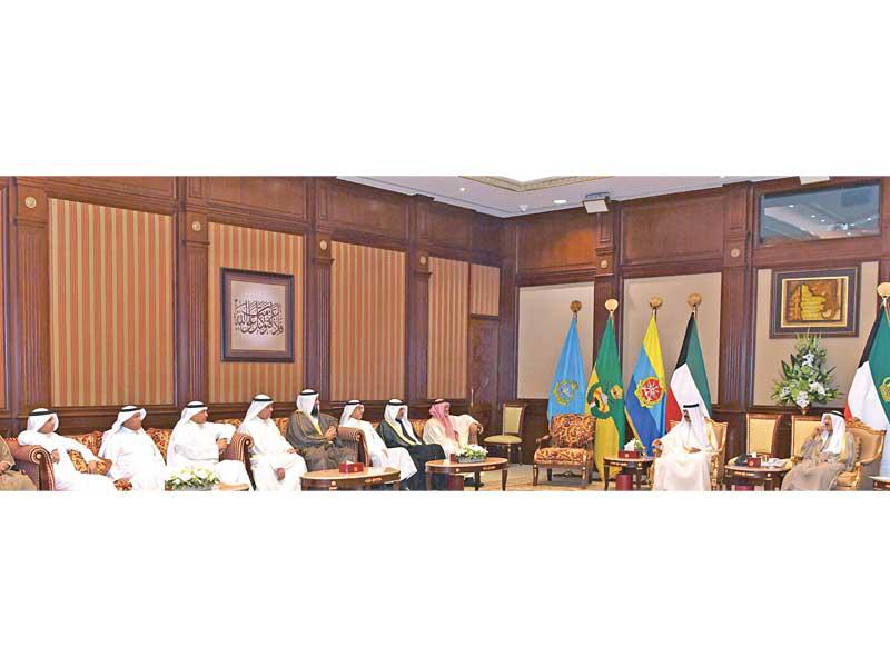 استقبل صاحب السمو أمير البلاد الشيخ صباح الأحمد، بقصر بيان صباح أمس، سمو ولي العهد الشيخ نواف الأحمد.كما استقبل سموه، رئيس مجلس الأمة مرزوق الغانم، ورئيس مجلس الوزراء سمو الشيخ جابر المبارك، ورئيس المجلس الأعلى للقضاء رئيس محكمة التمييز رئيس المحكمة الدستورية المستشار يوسف المطاوعة.واستقبل سموه، بحضور سمو ولي العهد الشيخ نواف الأحمد، وفد عائلة الخنة الذي ضم كلا من حمد الخنة ومحمد الخنة وسعد الخنة وفهد الخنة وجابر الخنة، حيث أعربوا عن جزيل شكرهم وعظيم امتنانهم لتفضل سموه بإصدار العفو الأميري عن ابنهم فهد الخنة.وفيما يلي نص لقاء سموه، بحضور سمو ولي العهد مع عائلة الخنة: