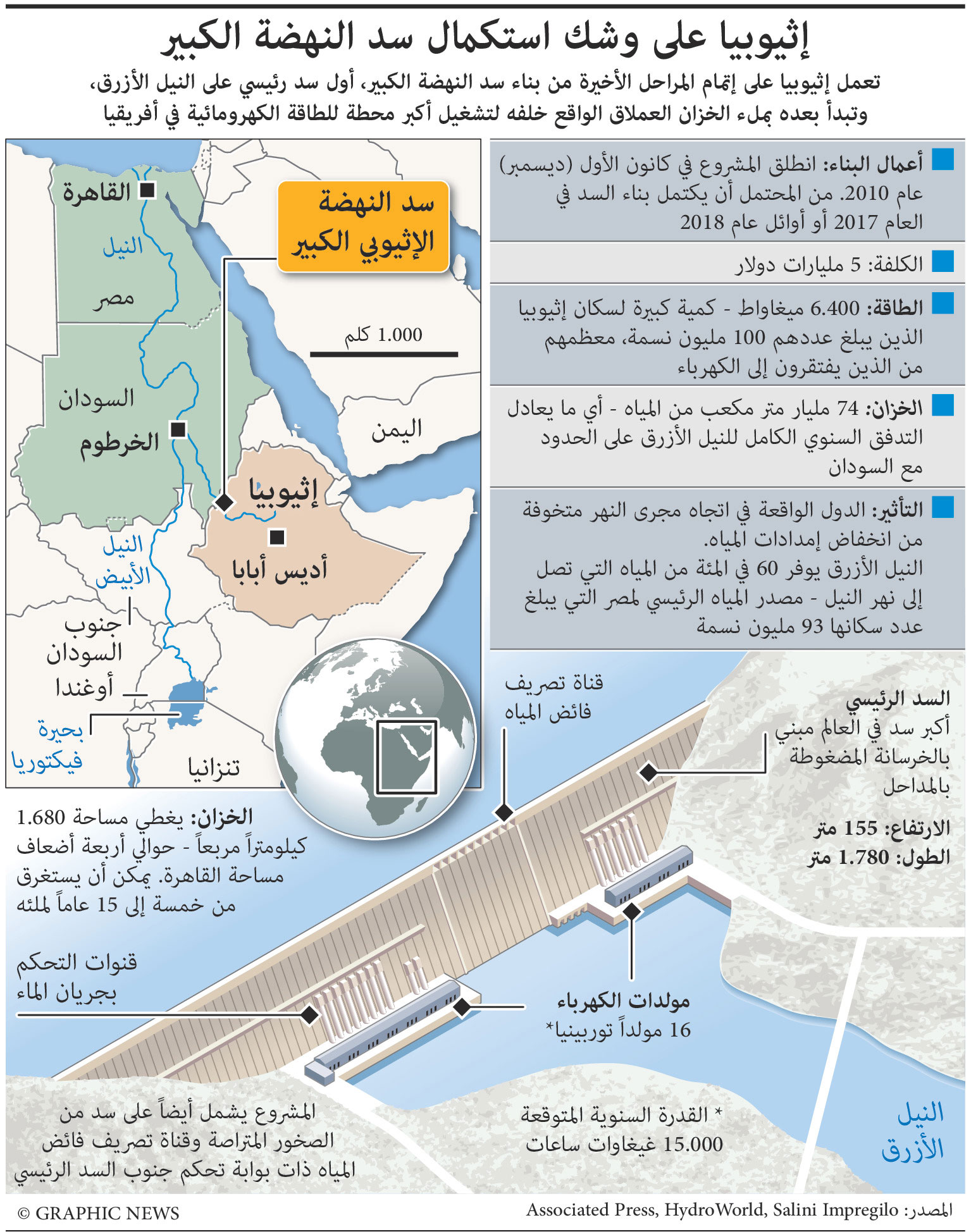 مشروع بناء سد النهضة يعود الى عام 1958 كما يؤكد الأستاذ الجامعي المصري زكي البحيري، عندما أرسلت أميركا بعثة إلى أديس أبابا استغرقت ست سنوات، وتوصلت إلى إمكان إقامة 33 مشروعا، من بينها سد النهضة لمواجهة السد العالي.كان اسمه في البداية "سد الحدود" وفي عام 1994 اعطي اسم النهضة، وصمم على ألا تتجاوز سعته 14.5 مليار متر مكعب لا 74 ملياراً كما تم الاستقرار عليه، وأعلنت اثيوبيا عن بدء انشائه عام 2011 على النيل الأزرق في مدينة "قوبا" بإقليم بني شنقول على الحدود مع السودان، ويبعد مسافة 20 كلم، وتكلفة المشروع بحدود 5 مليارات دولار استثمرت فيه شركات أميركية وصينية وإيطالية وألمانية وهندية.تأخر بناء السد ثلاث سنوات لسببين، الأول نقص التمويل، والثاني وجود واد عميق خلال تغيير مجرى المياه. أقيم المشروع على النيل الأزرق الذي يشكل 85% من مياه نهر النيل ويأتي من بحيرة تانا بإثيوبيا، لأغراض توليد الكهرباء لا للزراعة، والهدف بيع الكهرباء إلى الدول المجاورة، وسينتج السد 6 آلاف ميغاوات تسعى إثيوبيا لأن تصبح اكبر دولة مصدرة للكهرباء في إفريقيا.تخطط إثيوبيا لإنشاء عدد من السدود على النيل الأزرق ونهري السوباط وعطبرة بعد الانتهاء من سد النهضة وصولا إلى التحكم الكامل في مياه النهضة الإثيوبية.بحيرة السد تبلغ مساحتها 1874 كلم2، تقع خلف ذلك الخزان الذي يستوعب 74 مليار متر3 من المياه.الاتفاقيات... ما لها وما عليها