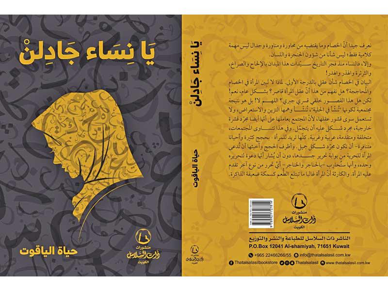 «يا نساء جادِلْن!»، بهذه العبارة التحريضية عنونت الكاتبة حياة الياقوت كتابها الجديد الصادر عن منشورات ذات السلاسل.ويحوي الكتاب 23 مقالة، موزعة على 5 فصول، تتناول قضايا عديدة متعلقة بالمرأة.وتقول الياقوت عن الكتاب إنه «مجادلة بالتي هي أحسن»، حتى يكون للنساء «نصيب مما اكتسبن».