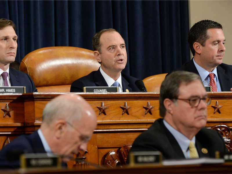 بعد جلسات مغلقة استمرت ستة أسابيع، بدأ الكونغرس الأميركي، أمس، الجلسات العلنية في إطار التحقيق الهادف لعزل الرئيس دونالد ترامب الذي يشتبه في استغلاله السلطة، لعرض وقائع المعركة الشرسة بين الرئيس الجمهوري والديمقراطيين مباشرة على الأميركيين عبر عدسات الكاميرات.ويدين ترامب تحقيقات الديمقراطيين في "القضية الأوكرانية" التي تستهدف عزله، معتبراً إياها "مهزلة وحملة هذيان شعواء ومحاولة انقلاب"، ويأمل في غسل هذه "الإهانة" عبر صناديق الاقتراع بفوزه بولاية ثانية في الانتخابات الرئاسية التي ستجرى في نوفمبر 2020.وبدأت الجلسات العلنية عند الساعة السادسة مساءً بتوقيت واشنطن بإفادتي دبلوماسيَّين هما وليام تايلور القائم بأعمال الولايات المتحدة في كييف، وجورج كنت المسؤول الكبير بوزارة الخارجية الأميركية الخبير في شؤون أوكرانيا.ولاحقاً، استمعت اللجنة للورا كوبر، المكلفة شؤون روسيا وأوكرانيا وأوروبا الوسطى بوزارة الدفاع الأميركية، ثم ديفيد هال مساعد وزير الخارجية الأميركي للشؤون السياسية.