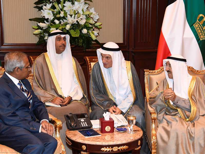 استقبل صاحب السمو أمير البلاد الشيخ صباح الأحمد بقصر بيان، صباح أمس، سمو ولي العهد الشيخ نواف الأحمد.واحتفل في قصر بيان، أمس، بتسلم صاحب السمو أوراق اعتماد كل من السفير عثمان جوهر سفيراً لسريلانكا، والسفير لويس ألونسو جاليانو سفيراً لهندوراس، والسفير الدكتور كريستيان تيودور سفيراً للاتحاد الأوروبي، والسفير كونستانتينوس بيبريجوس سفيراً لليونان، وذلك كسفراء لبلادهم لدى الكويت.