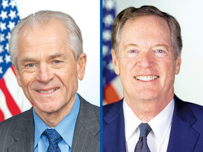 في 11 مايو أُعلن تثبيت روبرت لايتيزر وهو محام في واشنطن ونائب سابق لمكتب التجارة في عهد ريغان في منصب الممثل التجاري الاميركي، كان هو الشخص الذي يفترض فيه أن يكون مسؤولا عن قضايا التجارة.أحضر لايتيزر ونافارو في يوم 17 يوليو ملصقا كبيرا لعرضه على ترامب في المكتب البيضاوي، كان الملصق مجموعة كبيرة من المربعات والأسهم بألوان لامعة، وكان بعنوان «البرنامج الزمني للتجارة»، كان ذلك الملصق بمثابة رؤية لبرنامج سياسة ترامب الحمائية للتجارة، كما اشتمل على 15 تاريخا محددا لبدء إعادة التفاوض أو اتخاذ إجراء بشأن الاتفاق التجاري الكوري الجنوبي - الأميركي ونافتا، وكذلك للبدء بالتحقيقات والإجراءات المتعلقة بالألمنيوم والفولاذ وقطع السيارات، واقترح الملصق كذلك فرض رسوم جمركية على الفولاذ في غضون أقل من شهرين من الزمن، أي بعد عيد العمال.* المؤلف: بوب وودورد