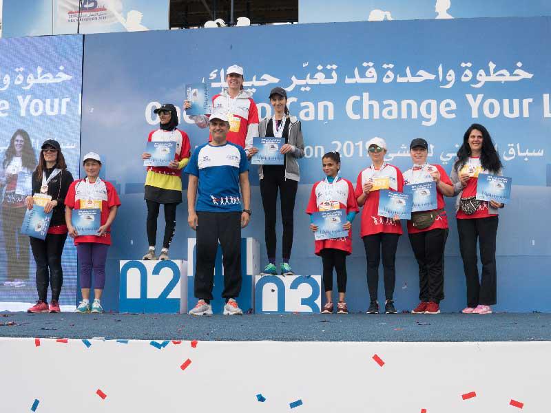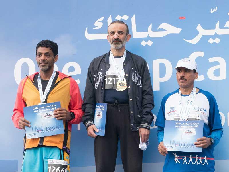 وتوّج بنك الكويت الوطني في ختام السباق أكثر من 100 فائز، وهم الأوائل عن الفئات العشر المشاركة في سباق المشي، حيث تم تقسيم المشاركين المتسابقين الى 10 فئات (إناث وذكور)، بحسب فئاتهم العمرية، وتكريم أول 10 فائزين من كل فئة ومكافأتهم.كما جرى توزيع عشرات الجوائز القيمة على الحضور المشاركين الذين كان لهم فرصة المشاركة في البرنامج الختامي الذي نظمه بنك الكويت الوطني في نهاية السباق، وتخلله العديد من المفاجآت والفعاليات الترفيهية والمسابقات.أصحاب الهمم