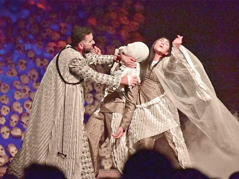 اختارت الفيلكاوي أن تسير بالمسرحية في خطين متوازيين تنتقل بينهما بذكاء، الأول وهو العام يتمثل في صراع الديكتاتور والشعب، والثاني عبرت عنه بمجموعة من المشاهد غير المترابطة التي تحدث ابطالها باللهجة العامية في إسقاط واضح وصريح على واقعنا المعيش، وكانت تلك الثنائيات مكملة للخط الدرامي الأول، وتسير في السياق نفسه الذي يعزز فكرة الصراع بين الحرية والاستبداد على اختلاف صوره، ورغم أن أفكار الفيلكاوي بدت غير مترابطة وتحتاج إلى إعادة نظر فإن الرؤية الإخراجية المميزة لخالد كانت علامة فارقة في هذا المساء.وفعّل خالد أمين أدواته كمخرج وكسب رهان عنصر التمثيل الذي اشتغل عليه، فشاهدنا أحمد إيراج على خشبة المسرح الأكاديمي بعد غياب بكامل لياقته ينتقل بسلاسة بين شخصية الديكتاتور ودور السيد، كذلك أحلام حسن صاحبت الأداء السهل الممتنع وتحركاتها الواعية وانتقالها من حالة إلى أخرى بإحساس عال، وأيضا علي الششتري ورازي الشطي الذي كان ظهوره بسيطا ولكنه مؤثر، بينما لعب السينوغرافيا دورا هاما في خدمة الفكرة العامة للمسرحية، فكان الديكور على هيئة حائط ضخم من الجماجم توسطه سلم، وفي الخلفية إضاءة تتغير وفق حالة كل مشهد.التعبير الحركي