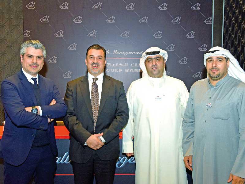 وأقيمت أيضا عدة فعاليات تناسب شريحة النساء، منها دعوة حصرية لمعرض باشنز أرابيا في فندق الفورسيزنز، ودورة طبخ مع سوسن مطبخي، وعروض حصرية وخاصة مع مجوهرات الفارس.وقال مساعد المدير العام للاتصالات الخارجية في بنك الخليج أحمد الأمير: "نولي أقصى درجات الاهتمام بجميع عملائنا، لكن الخدمات المقدمة لعملاء إدارة الثروات تم تصميمها خصيصا لتناسب نمط حياتهم. ومنها تنظيم البنك عدة فعاليات اجتماعية وترفيهية حصرية تمنحهم التميز الذي اعتادوا عليه، ونعد عملاءنا بالمزيد من الخدمات والأنشطة المميزة في العام المقبل".ويندرج تحت إدارة الثروات قسم الخدمات المصرفية المميزة، الذي يضم العملاء الذين يملكون رصيد الحسابات و/أو الصناديق الاستثمارية تعادل 50000 د.ك حتى 500000 د.ك، أو من يقومون بتحويل راتب شهري يعادل 3500 د.ك وأكثر، ويندرج تحت إدارة الثروات أيضا قسم الخدمات المصرفية الخاصة، للعملاء الذين يملكون رصيد الحسابات و/أو الصناديق الاستثمارية تزيد على 500000 د.ك.الجدير بالذكر أن عملاء إدارة الثروات يحصلون على عدة مميزات، منها بطاقة السحب الآلي التي تتيح الدخول لصالات المطارات، وتوفر خصومات عند حجز تذاكر السفر والفنادق من موقع cleartrip.com، وعند استخدام خدمة "كريم" للتوصيل، كما توفر نظام الحماية للتسوق عبر الإنترنت.كما يمكنهم الحصول على بطاقة ائتمانية (فيزا إنفينيت أو ماستركارد وورلد) تمنحهم تأمينا شاملا على الحوادث والسفر، وتتيح لهم الدخول لصالات المطارات، وخدمة Dine & Fly لخصومات المطاعم، وخدمة الكونسييرج المحلية، إلى جانب برنامج نقاط الخليج وخصومات الخليج والعديد من المزايا الأخرى.