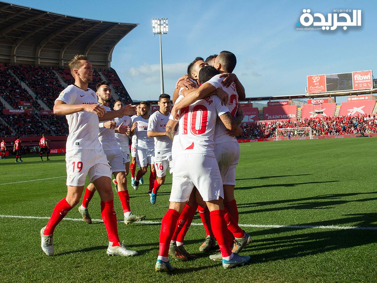 ضيق إشبيلية الخناق على فريقي الصدارة برشلونة وريال مدريد بفوزه على مضيفه ريال مايوركا 2-صفر السبت، في المرحلة 18 من بطولة إسبانيا لكرة القدم.ورفع النادي الأندلسي رصيده إلى 34 نقطة في المركز الثالث، متأخرا بفارق نقطتين عن صاحبي الصدارة بالتساوي، بانتظار لقاء برشلونة في وقت لاحق اليوم أمام ديبورتيفو ألافيس، فيما يستضيف النادي الملكي غدا أتلتيك بلباو.