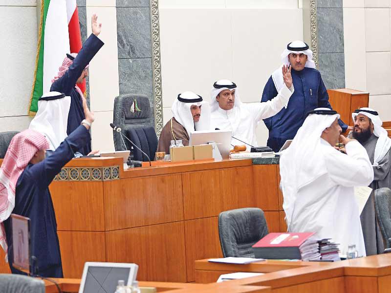وفي نقطة نظام، قال امين سر مجلس الامة النائب عودة الرويعي: حسين الخصيلي توفي بحادث، والحادثة كيفت جنحة مرور، وانا اخذت وعدا من وزير الداخلية باعادة التحقيق في هذه القضية او تتم احالتها للجنة حقوق الانسان، واطلب منه التعاون وأعزي اسرة احمد الظفيري.وشكل المجلس لجنة تحقيق برلمانية في تجاوزات التعيينات بمؤسسة البترول الوطنية.وقال النائب الحميدي السبيعي: من باب التعاون قبلنا تشكيل لجنة التحقيق في تجاوزات التعيينات النفطية والا كنا ذاهبين الى استجواب وزير النفط، واذا لم ندخل في عضوية اللجنة فسنقوم بالاستجواب غدا، فهذه فكرتنا انا وبدر الملا.وحسمت عضوية اللجنة بالتزكية لكل من الحميدي السبيعي وبدر الملا وخليل عبدالله وفيصل الكندري وصالح عاشور.وشكل المجلس لجنة تحقيق من عادل الدمخي وماجد المطيري وعبدالله الكندري لاخلاء الاراضي التابعة لمؤسسة الموانئ والتعدي على املاك الدولة.ونظر المجلس طلبا لتشكيل لجنة تحقيق في تداعيات تزوير الجنسية الكويتية وطلبا اخر بتكليف لجنة الداخلية والدفاع بالتحقيق في الموضوع.وقال الوزير انس الصالح: الحكومة لا تمانع تشكيل اي لجنة تحقيق او تكليف لجنة مختصة بالتحقيق لكن مع وجود الخلاف النيابي ستمتنع الحكومة عن التصويت.وقال الغانم: هناك طلبان احدهما ان تكون منفصلة واخر تكليف للجنة الداخلية والدفاع وهناك طلب للنداء بالاسم، وسيتم التصويت على الطلبين.ومع تصويت الحكومة ممتنعة أسقط المجلس طلبا لتشكيل لجنة تحقيق خاصة بشأن تداعيات تزوير الجنسية الكويتية بنتيجة 20 موافقة، و 23 عدم موافقة، وامتناع 13 .وصوت المجلس على تكليف لجنة الداخلية والدفاع بالتحقيق في تداعيات تزوير الجنسية الكويتية، والحكومة تمتنع عن التصويت، وأسقط المجلس الطلب وسط امتناع الحكومة من خلال موافقة 19، ورفض 24، وامتناع 13 عضوا.وقال النائب بدر الملا: واضح من امتناع الحكومة عن التصويت على طلبي التحقيق في تداعيات تزوير الجنسية الكويتية انها لا تريد التحقيق في قضية تزوير الجنسية وغير جادة.ووافق المجلس على تكليف لجنة المرافق العامة البحث في قضية دعم المنتج الزراعي المحلي وتقديم تقرير بذلك خلال ثلاثة اشهر.وكلف المجلس اللجنة الصحية بالتحقيق في اسباب وفاة عبدالعزيز الرشيدي وحنان العدواني.وعرض الغانم طلبا نيابيا لاستعجال قانون العفو الشامل، والوزير الحريص يقول: الحكومة تتحفظ عن الطلب.وقال النائب خالد الشطي: اللجنة التشريعية لا تستطيع انجاز تقريرها بشأن العفو الشامل خلال اسبوعين، ونطلب شهرا لتقديم التقرير كاملا، والمجلس يوافق على فترة الشهر.وتمت الموافقة على طلب نيابي باستعجال اللجنة الصحية انجاز تقريرها عن تعديلات قانون الصيدلة وسط تحفظ النائب صالح عاشور.ووافق المجلس على استعجال مناقشة الاقتراح بقانون بشأن تعديل قانون ادارة التحقيقات التابعة للداخلية.كما وافق المجلس على استعجال مناقشة تقرير اللجنة المالية عن اضافة مادة جديدة لقانون الشراكة بين القطاعين العام والخاص في اول جلسة قادمة.ورفض المجلس استعجال مناقشة قوانين الدوائر الانتخابية والنظام الانتخابي ومناقشتها في الجلسة القادمة. ووافق المجلس على استعجال تقارير تعديل قانون التأمينات الاجتماعية والتعديلات على مرسوم الخدمة المدنية والتفرغ الاسري واعتبار العشر الاواخر من رمضان عطلة رسمية والتأمين الصحي على المواطنين المتقاعدين.وتلا الغانم طلبا بمناقشة تقرير اللجنة المالية عن الاستبدال اليوم.ووافق المجلس على استعجال مناقشة تقرير قانون التأمينات بما يخص الاستقطاعات في جلسة اليوم، والغانم يقول: سأقترح بعد التصويت عليهم تفويض مكتب المجلس للترتيب.ووافق المجلس على استعجال مناقشة تعديل قانون التأمينات بشأن تنفيذ الاستبدال بالتوافق مع الشريعة.وقال الغانم: هناك عشرة قوانين يوجد بها طلبات نيابية لاستعجالها، وأطلب من المجلس ان يوافق على منح مكتب المجلس الصلاحية لمنحها الاولوية على القوانين الاخرى على ان يتم استدعاء ا