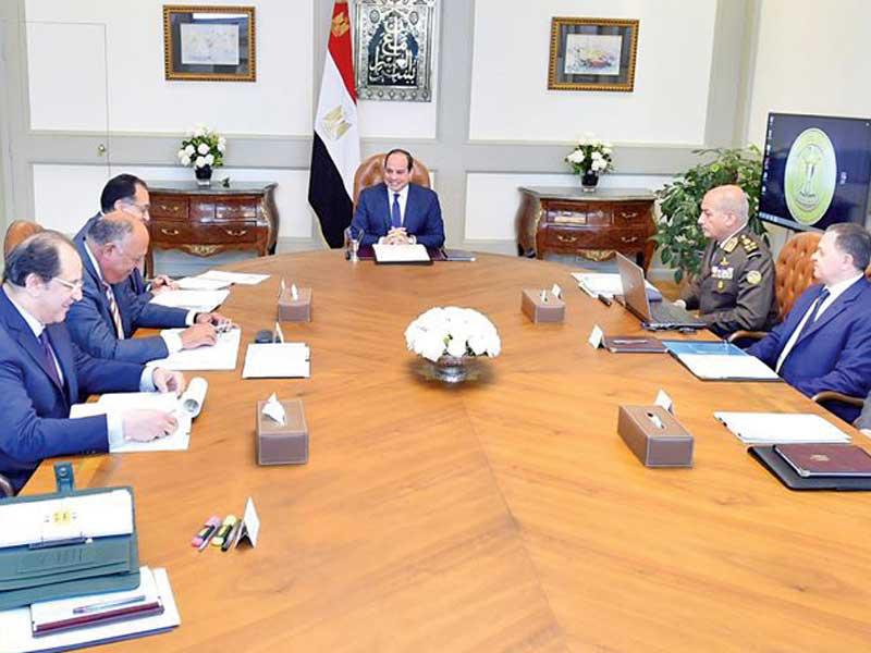 وأمر توفيق بالتعبئة الميدانية لجميع المستويات القيادية، من أجل متابعة سير الأداء الأمني وتنفيذ الخطط الأمنية، مشدداً على الالتزام بحسن معاملة المواطنين، ومراعاة البعد الإنساني لدى التعامل مع الجماهير أثناء تنفيذ بنود الخطة الأمنية. وتزامناً مع حالة التصعيد في الملف الليبي عقد الرئيس المصري عبدالفتاح السيسي، أمس الأول، اجتماعاً مع عدد من وزراء حكومته لمناقشة مستجدات الأوضاع في ليبيا وسبل تسوية الأزمة على نحو شامل ومتكامل يتناول كل جوانبها لا أجزاء منها، بما يساهم في القضاء على الإرهاب، والحفاظ على موارد الدولة الليبية ومؤسساتها الوطنية، ويحد من التدخلات الخارجية غير المشروعة.وقال المتحدث الرئاسي، في بيان، إن الاجتماع تناول إلى جانب الملف الليبي تطورات سد النهضة ودعم الأمن والاقتصاد، كما تم استعراض آخر المستجدات على صعيد الأوضاع الأمنية ومكافحة الإرهاب، حيث وجه السيسي في هذا الخصوص بمواصلة الأجهزة المعنية بذل أقصى الجهد للحفاظ على الأمن وتوفير الأمان للمواطنين، سواء في مجال مكافحة الإرهاب والتطرف أو الأمن الجنائي. وذكر أن السيسي طالب بصون مقدرات الشعب المصري وترسيخ الاستقرار الأمني والمجتمعي في جميع أنحاء الجمهورية، فضلاً عن توفير المناخ الملائم للتنمية والتقدم الاقتصادي.وتناول الاجتماع تطورات مفاوضات سد النهضة، وذلك في إطار تمسك مصر بالتوصل لاتفاق يراعي كل الشواغل المتعلقة بمصالحها وحقوقها المائية في نهر النيل، وخاصةً تلك المتصلة بملء وتشغيل السد، بما يحقق في ذات الوقت مصالح الدول الثلاث، مصر والسودان وإثيوبيا.إلى ذلك، كشف وزير الكهرباء والطاقة المتجددة المصري محمد شاكر أن موعد بدء التشغيل الفعلي للربط الكهربائي مع السودان سيكون يوم 12 يناير المقبل بطاقة 50 ميغاوات، وتكلفة المشروع بلغت 509 ملايين جنيه، وبمسافة 1000 كيلو، مشيراً إلى أنه تم عقد اجتماعات مع الجانب السوداني خلال الأسبوع الماضي استعدادا لبدء التشغيل.وفي خطوة تزيد الاحتقان بين وزارة الداخلية والقوى السياسية المدنية، أعلن حزب التحالف الشعبي الاشتراكي توقيف أحد أعضائه بمدينة الاسكندرية الساحلية الثلاثاء الماضي وذلك بالتزامن مع توقيف ثلاثة أعضاء من حزب تيار الكرامة بمدينة كفر الشيخ أحدهم يعاني مرض السرطان.