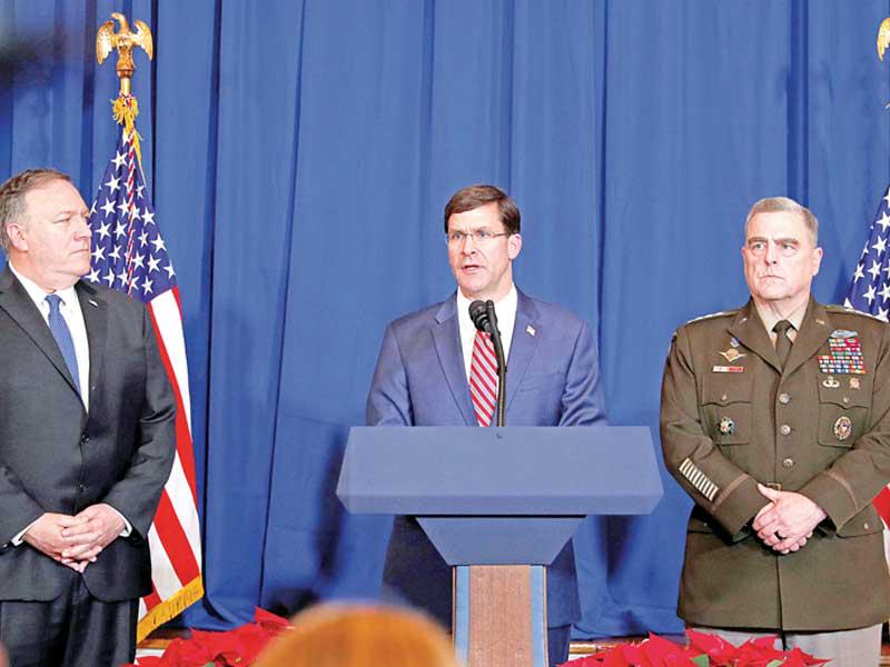 توعد وزير الدفاع الأميركي مارك إسبر بالمزيد من الإجراءات الإضافية الضرورية لردع ما وصفه بـ"السلوك السيئ" من قبل مجموعات الميليشيات العراقية وإيران بعد شن القوات الأميركية ضربات على مواقع لـ"كتائب حزب الله العراقي"، في العراق وسورية رداً على مقتل متعاقد أميركي مدني في قصف صاروخي على قاعدة قرب بغداد الجمعة الماضية.وقال اسبر، في تصريح مساء أمس الأول، عقب لقائه الرئيس الأميركي دونالد ترامب، إن "الضربات كانت ناجحة وعاد الطيارون والطائرات إلى القاعدة بأمان"، مشيراً إلى أن الطائرات قصفت خمسة أهداف، ثلاثة في غرب العراق واثنان في شرق سورية، لافتاً إلى أنها كانت إما منشآت قيادة وسيطرة أو مخازن أسلحة.وشدد على أن الضربات التي شنت بطائرات "إف 15" جاءت لتأكيد "أننا سنتصرف في إطار دفاعنا عن النفس".
