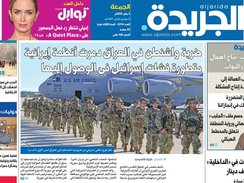 عشية اغتيال سليماني في مطار بغداد، كشفت "الجريدة" في عددها الصادر في 3 يناير أن المرشد الأعلى الإيراني علي خامنئي طلب من سليماني الذهاب فوراً إلى بغداد لمتابعة التطورات وسط التوتر بين الفصائل الشيعية مع واشنطن. جاء ذلك بينما قالت تقارير إن زيارة سليماني لبغداد كانت مفاجئة وسرية.