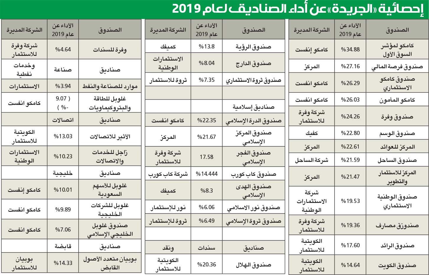صندوق «كامكو» لمؤشر السوق الأول الأعلى بعائد 34.88 و«ثروة» الأدنى بنسبة 7.35%