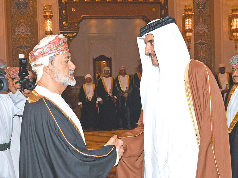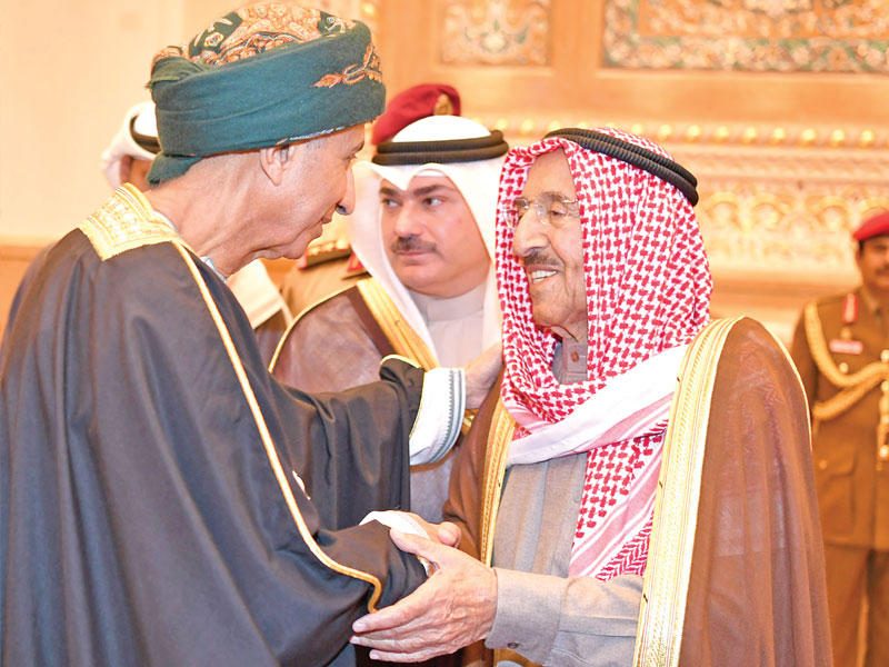 وسط توالي الإشادات العربيّة والغربيّة بحكمة سلطان عمان الرّاحل قابوس بن سعيد في معالجة القضايا الإقليميّة والإسلاميّة وقيادته تحديث دولته على مدار 5 عقود، تقدم أمير البلاد الشيخ صباح الأحمد قادة الدول ومسؤوليها في تقديم واجب العزاء إلى خليفته وابن عمه هيثم بن طارق في قصر العلم.