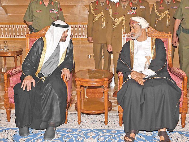 وإلى جانبه وفد رفيع ضم ممثل حاكم منطقة العين ونائب رئيس المجلس التنفيذي لأبوظبي ونائب رئيس مجلس الوزراء وزير الداخلية ومستشار الأمن الوطني، نقل ولي عهد أبوظبي نائب القائد الأعلى للقوات المسلحة الشيخ محمد بن زايد إلى السلطان هيثم تعازي رئيس الإمارات الشيخ خليفة بن زايد وخالص مواساته لأسرة آل سعيد والشعب العماني، مؤكداً تضامنه مع السلطنة في لحظات الحزن والأسى على رحيل قائد خليجي وعربي وعالمي كبير له بصماته الخالدة في تاريخ المنطقة والعالم.وتمنى بن زايد، الذي رافقه أيضاَ وزير شؤون الخارجية ووزير شؤون الدفاع، التوفيق لبن طارق في قيادة عمان نحو مزيد من الرفعة والتنمية والتقدم وللسلطنة دوام الاستقرار والمنعة في ظل قيادتها الجديدة.وفي وقت سابق، بعث الشيخ خليفة بن زايد ونائب رئيس الدولة رئيس مجلس الوزراء حاكم دبي محمد بن راشد برقية تهنئة إلى بن طارق بمناسبة تنصيبه سلطاناً لعمان.إيران وبريطانيا