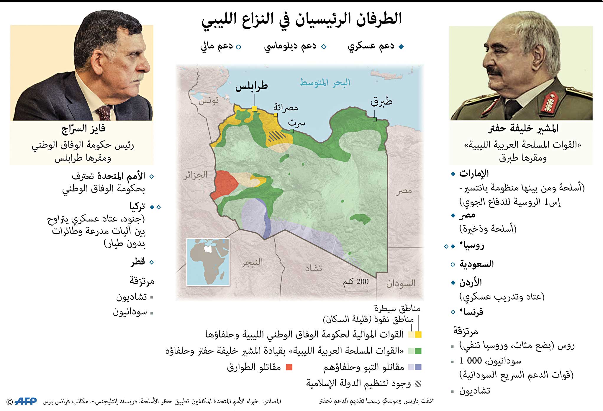 ويناقش المؤتمر، الذي يشارك فيه أيضاً مع إردوغان والسيسي الرؤساء الروسي فلاديمير بوتين والفرنسي إيمانويل ماكرون والجزائري عبدالمجيد تبون، ورئيسا وزراء بريطانيا بوريس جونسون وإيطاليا جوزيبي كونتي، ووزير الخارجية الأميركي مايك بومبيو، إضافة إلى السراج وحفتر، مشروع بيان يتضمن 6 محاور، هي وقف دائم لإطلاق النار، وحظر توريد الأسلحة وحصره في يد الدولة، واستئناف العملية السياسية، وإصلاح الاقتصاد، واحترام القانون الدولي وحقوق الإنسان، ووضع آلية دولية لتنفيذ مضمون هذه السلال وإحالتها إلى مجلس الأمن.ووفق وكالة «تاس»، فإن مسودة البيان الختامي تنص على إنشاء آلية تحت رعاية الأمم المتحدة، تنقسم إلى قسمين، أولهما يتمثّل في لقاءات يعقدها شهريا ممثلون رفيعو المستوى عن الدول القائمة بالوسطة في تسوية الأزمة الليبية، مع تقديم تقرير حول نتائج كل لقاء، أما القسم الثاني فسيكون على شكل مجموعات عمل تعقد اجتماعاتها مرتين بالشهر في ليبيا أو تونس.وفي إشارة لإرسال تركيا قوات لدعم حكومة السراج، تدعو الوثيقة إلى وقف كل تحركات الأطراف المتحاربة أو نقل قوات «من أجل تقديم دعم مباشر في جميع الأراضي الليبية منذ بدء سريان الهدنة».وتقضي سلّة العملية السياسية بإنشاء مجلس رئاسي فاعل وتشكيل حكومة ليبية واحدة وشاملة وفعالة، يصادق عليها مجلس النواب، واستعادة العملية السياسية تحت رعاية بعثة الأمم المتحدة، والمشاركة فيها بشكل بناء لإجراء انتخابات برلمانية ورئاسية حرة ومستقلة.وقبيل المؤتمر، الذي يشترك فيه كذلك ممثلون عن الصين والإمارات والجزائر والكونغو، إلى جانب الأمم المتحدة والاتحاد الأوروبي والاتحاد الإفريقي والجامعة العربية، أجرى حفتر محادثات في أثينا، قبل أن يشكر بوتين على جهوده الرامية لإنهاء الحرب ومبادرته لعقد محادثات «تفضي إلى السلام في ليبيا»، مؤكدا استعداده للعودة إلى روسيا لمواصلة الحوار.ثوابت عربية