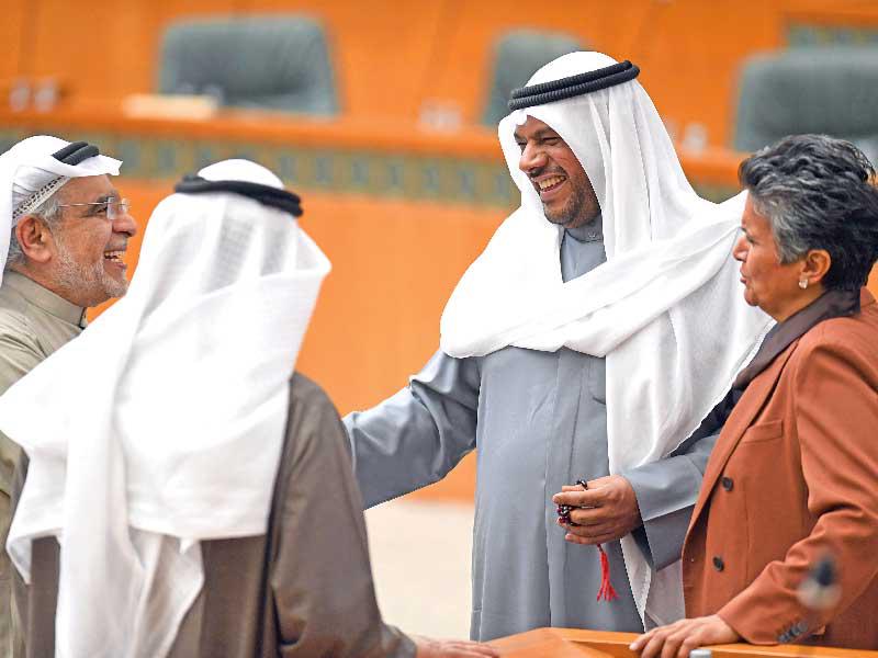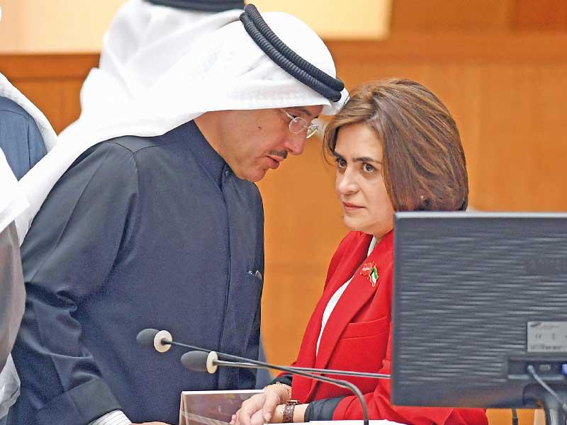 ورفض المجلس رسالة الفضل بإحالة الاقتراحات المتعلقة بسوق المزارعين إلى لجنة تحسين بيئة الأعمال.وقال وزير الخارجية الشيخ أحمد الناصر: بناء على نص المادة 76 اطلب استعجال مناقشة تقرير لجنة الخارجية بشأن المنطقة المقسومة بجلسة الغد (الاربعاء).وقال الغانم: أقترح أن تكون مناقشة تقرير اللجنة الخارجية بشأن اتفاقية المنطقة المقسومة بعد الانتهاء من الخطاب الأميري غدا، والمجلس يوافق.ووافق المجلس على تأجيل بند الاسئلة لجلسة الغد.وانتقل المجلس إلى بند مناقشة الاستجواب المقدم من النائب عادل الدمخي لوزيرة الشؤون الاجتماعية والعمل غدير أسيري، والمكون من محور واحد.واعتلت أسيري منصة الاستجواب بعد كلمة قالت فيها إن هذا الاستجواب به عيوب ومثالب دستورية أجمع عليها العديد من الخبراء الدستوريين والنواب وأصحاب الضمائر الحية، وهذا الاستجواب مس كرامتي كمواطنة كويتية وكرامة أسرتي فإنني اليوم أدافع عن حرياتي الدستورية بعد أن تعرضت لمهانة كرامتي، لذلك جاهزة لصعود المنصة.وفي نقطة نظام، قال النائب عدنان عبدالصمد: الوزيرة قالت إن الاستجواب غير دستوري، فاشلون تصعد المنصة وهو غير دستوري؟! وعلق الرئيس الغانم بقوله: هذا الأمر راجع لها فهي قالت إنها ستدافع عن سمعتها وكرامتها.اختيار الوزراء