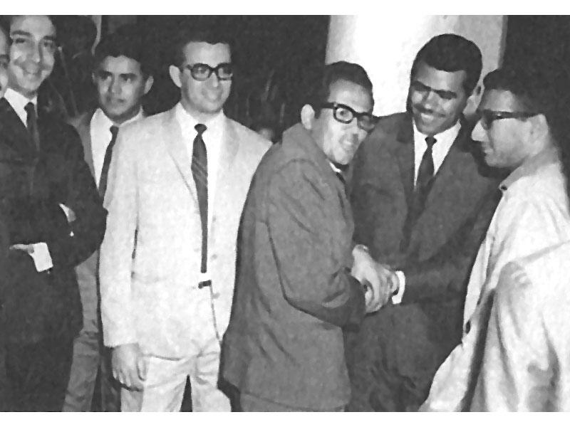 صبيح سامي السلطان وعهدي فهد المرزوق وسامي الضبيب وفيصل الحجي وضاري العثمان وخالد الوسمي وناصر الصانع في القاهرة أيام الستينيات