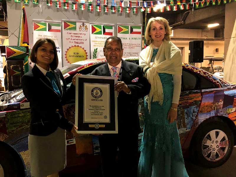 دخلت سفارة غايانا لدى الكويت موسوعة «غينيس» للأرقام القياسية بعدما تمكنت من لصق 41543 ملصقاً على إحدى السيارات خلال خمس ساعات فقط بالتعاون مع 24 شخصا تقدّمهم السفير شامير علي.