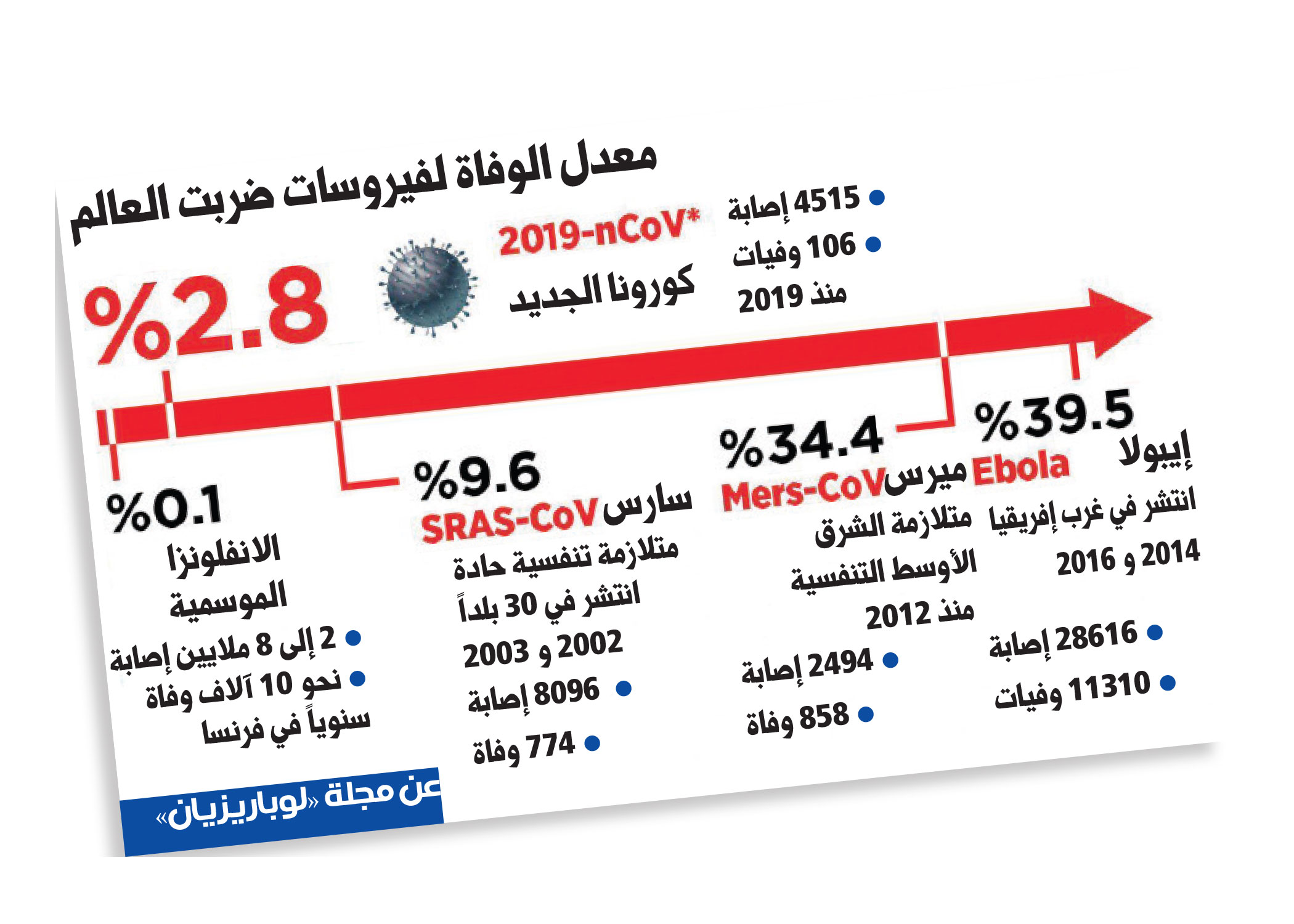 مع استمرار ارتفاع حصيلة الضحايا الذين حصدهم فيروس كورونا الجديد في الصين إلى 106 وفيات، حيث يواصل الوباء تفشّيه مع تسجيل نحو 1300 إصابة جديدة، حسبما أعلنت السلطات، أمس، مما رفع إجمالي عدد الإصابات المؤكّدة هناك إلى 4515 حالة، أكد خبراء في علم الأوبئة، بناءً على المعطيات الأولية المتاحة، أن الفيروس الجديد "سيتسبب في إصابة ما لا يقلّ عن عشرات آلاف المرضى، وستستمرّ أزمة انتشاره شهوراً عدة في أحسن الأحوال"، في وقت تمّ التحذير من السفر من الصين وإليها.وقال ديفيد فيسمان، الأستاذ في "جامعة تورونتو" ومؤلف نشرة للجمعية الدولية للأمراض المعدية، إن "أفضل السيناريوهات سيكون أن يستمرّ ذلك في الربيع والصيف وبعدها يتراجع".من جهته، أكد الأستاذ في "جامعة نورث إيسترن" الأميركية أليساندرو فيسبينياني، وهو منسّق مجموعة باحثين تنشر تحاليل بشكل آني حول الوباء، أن المرض "لن يتوقف الأسبوع المقبل، ولا الشهر المقبل"، مضيفاً: "لا نخاطر بالقول إن ذلك سيستمر فترة طويلة".وأعلنت السلطات الصحية الأميركية أن التحاليل التي أجرتها كشفت أن الفيروس لم يتحوّل. وقالت نانسي ميسونييه، المسؤولة عن أمراض الجهاز التنفسي في مراكز السيطرة على الأمراض والوقاية منها: "حالياً، وبناءً على تحاليل المعطيات المتاحة التي أجراها المركز، لا يبدو أن الفيروس قد تحوّل".
