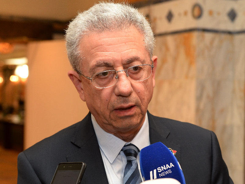 رئيس مجلس العلاقات العربية والدولية متحدثاً إلى الصحافة