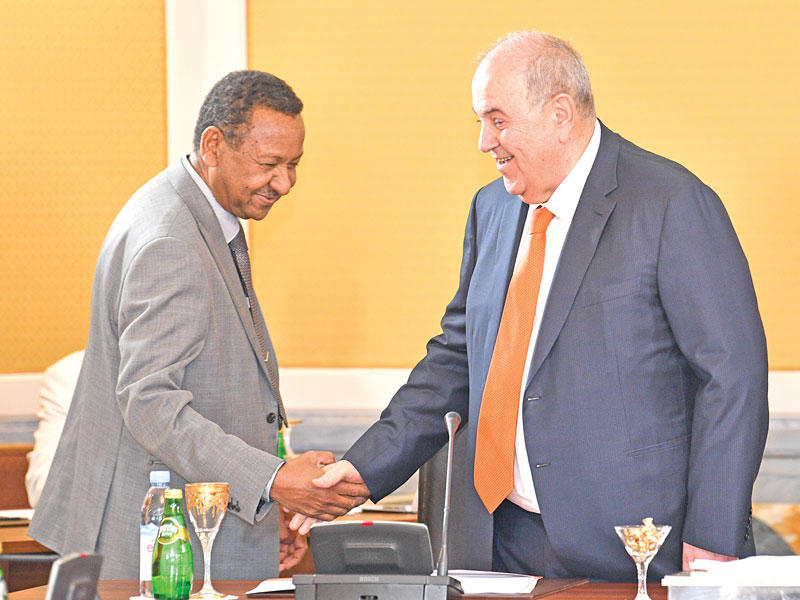 حديث بين عمرو موسى وعلاوي بحضور الصقر