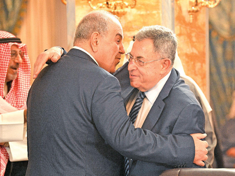 عناق بين السنيورة وعلاوي