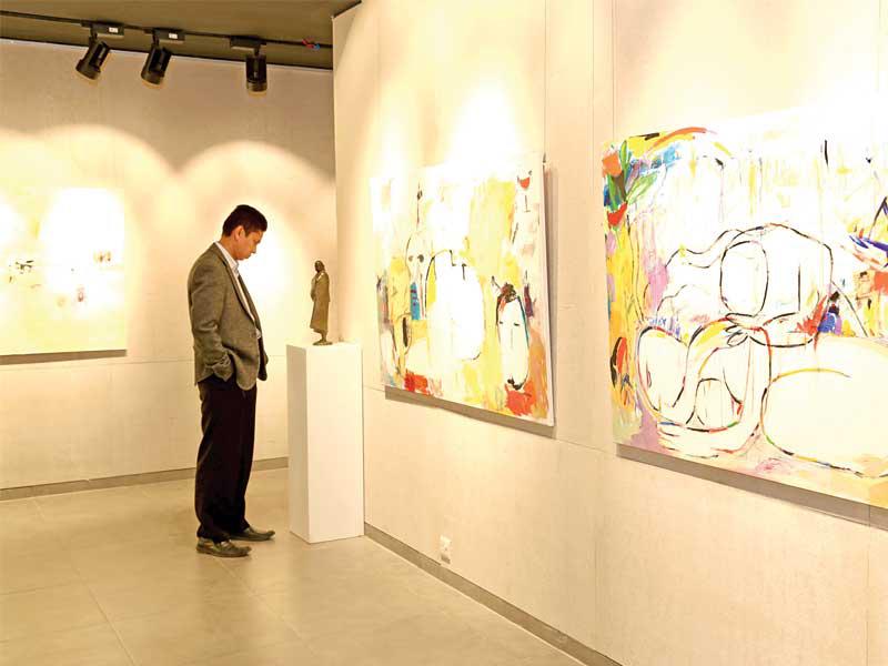 أدخل عناصر جديدة للوحات معرضه محافظاً على «الإكريلك»
