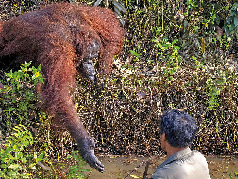 مدّ قرد أورانغوتان (إنسان الغاب) يده لرجل كان يزيل الثعابين من النهر كجزء من جهود حماية القردة المُهددة بالانقراض، مُثيرا اهتمام الكثيرين في جميع أنحاء العالم. وقالت "سي إن إن" على موقعها الإلكتروني أمس إن هذه اللحظة وثقها المصور الهاوي أنيل برابهاكار، عندما لاحظ قردا في جزيرة بورنيو الإندونيسية يمد يده لنجدة رجل من المياه التي تعج بالأفاعي.وكان برابهاكار في رحلة سفاري مع أصدقائه في غابة محمية تديرها مؤسسة بورنيو للبقاء على قيد الحياة، عندما شاهد المشهد.وقال برابهاكار: "كان هناك أخبار عن وجود ثعابين في تلك المنطقة، لذا جاء حارس المحمية وطهرها من الثعابين".