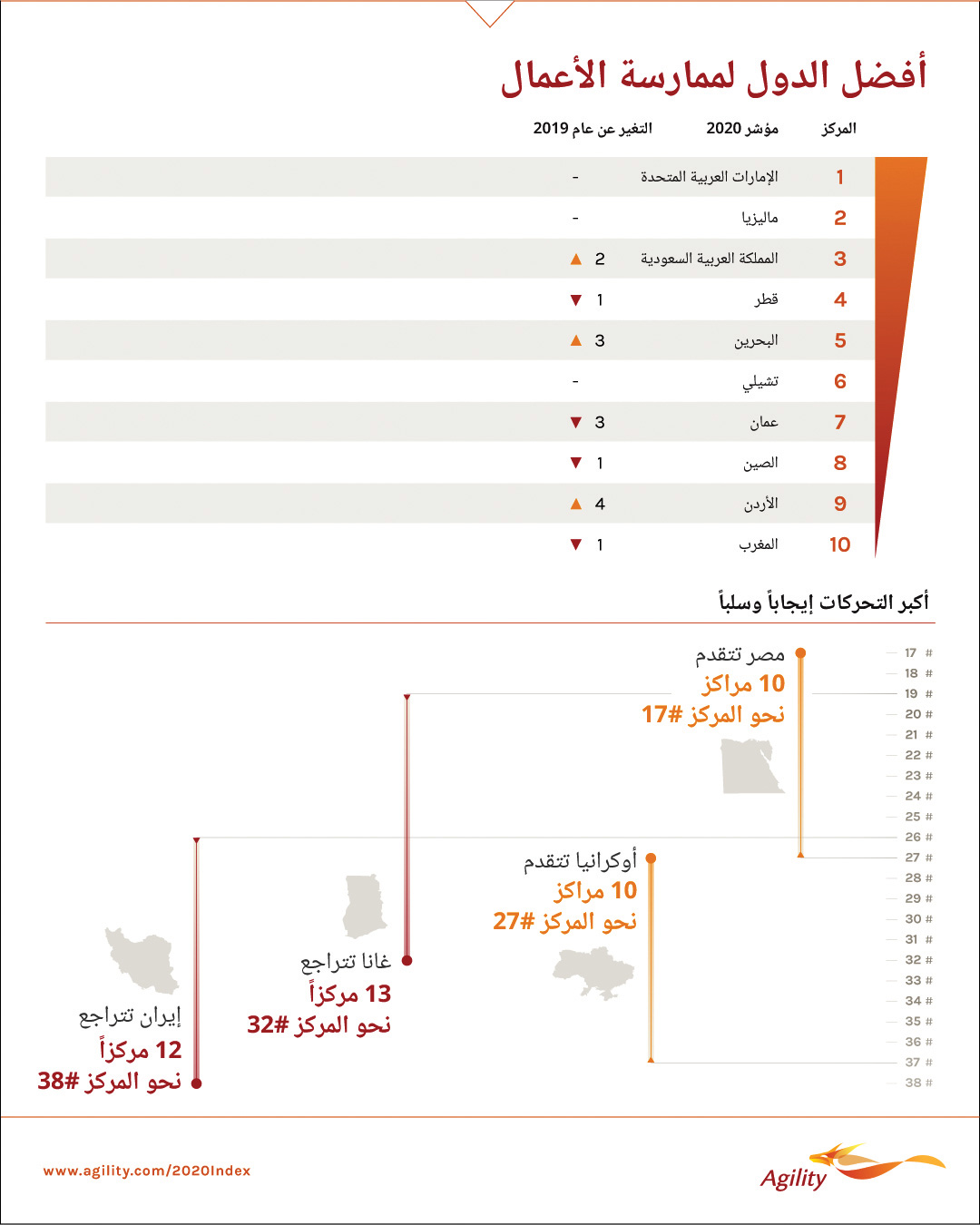 وأظهر استبيان "أجيليتي" السنوي الذي شارك فيه 780 من مهنيي قطاع سلاسل الإمداد، أن هناك حالة من التشاؤم العام حول الاقتصاد العالمي، إذ اعتبر 64 في المئة من المشاركين أن الركود العالمي أمر "مرجّح"، بينما استبعد هذا الاحتمال 12 في المئة فقط من المشاركين في الدراسة. وتستند هذه الاعتقادات إلى الضغوطات السلبية على أحجام التجارة العالمية، وآفاق النمو غير المؤكدة، واستمرار الحرب التجارية بين الولايات المتحدة الأميركية والصين.ويقوم المؤشر بتصنيف 50 دولة وفقاً للعوامل التي تعزز جاذبيتها بالنسبة لمزودي الخدمات اللوجستية ووكلاء وخطوط الشحن وشركات الطيران والموزعين. وجاءت المراكز العشرة الأولى على النحو التالي بحسب الترتيب: الصين، والهند، والإمارات العربية المتحدة، وإندونيسيا، وماليزيا، والسعودية، وقطر والمكسيك، وتايلند، وتركيا.وتأتي الصين والهند وإندونيسيا في المراكز الأولى من حيث الخدمات اللوجستية المحلية، في حين حصدت الصين والهند والمكسيك أولى المراكز في الخدمات اللوجستية الدولية، اما أفضل المراكز من حيث أساسيات مزاولة الأعمال فجاءت من نصيب الإمارات وماليزيا والسعودية.أبرز النتائج التي تناولها مؤشر واستبيان عام 2019:● حصدت الصين والهند أعلى تصنيفين على مؤشر العام، استناداً لحجم وقوة الدولتين كأسواق للخدمات اللوجستية المحلية والدولية، بينما تراجع كل منهما عن المنافسين الأصغر حجماً في مؤشر أساسيات مزاولة الأعمال، وهي فئة تصنّف الدول بناء على البيئة التنظيمية، وآليات الائتمان والدين وتنفيذ العقود العملاقة، وضمانات مكافحة الفساد، واستقرار الأسعار والوصول إلى السوق. وفي هذا المجال، تحتل الصين المركز الثامن، بينما تأتي الهند في المرتبة الثامنة عشرة.● ويرى المشاركون في الاستبيان، أن الهند تعتبر السوق الأفضل من حيث الإمكانيات متفوقةً في ذلك على الصين التي جاءت في المرتبة الثانية، أما على صعيد بيئة مزاولة الأعمال، فقد تفاوتت تحركات الدول إيجاباً وسلباً، إذ تقدمت مصر عشر مراتب لتحل في المركز السابع عشر، كما قفزت أوكرانيا عشر مراتب أيضاً لتحل في المركز السابع والعشرين، بينما تراجعت كل من غانا ثلاث عشرة مرتبة إلى المركز الثاني والثلاثين، وإيران اثنتي عشرة مرتبة إلى المركز الثامن والثلاثين. ● وأشار اثنان وأربعون في المئة من المشاركين في الاستبيان إلى أن المواجهة الطويلة بين الولايات المتحدة الأميركية والصين قد تعود بالفائدة على دول جنوب شرق آسيا، والتي تعتبر بدائل عن الصين من حيث المصادر والتصنيع. وهذه النسبة جاءت أقل من نسبة العام الماضي 56 في المئة ممن قالوا إن دول جنوب شرق آسيا ستستفيد من هذه المواجهة.● تمكن الاقتصاد المصري من تحقيق مكاسب مبهرة في كل القطاعات الرئيسية ليتقدم تصنيف مصر ست مراتب لتحصد المركز العشرين على التصنيف العام للمؤشر، في حين قفزت عشرة مراكز على مؤشر أساسيات مزاولة الأعمال لتصل إلى المركز السابع عشر، وست مراتب على مؤشر الفرص المحلية لتحل في المركز الثالث عشر، فضلاً عن تقدمها خمسة مراكز على مؤشر الفرص الدولية لتحصد المركز الثالث والعشرين، وذلك على الرغم فترة الاضطرابات الاجتماعية القصيرة التي اجتازتها مصر خلال عام 2019.● وبحسب المتخصصين في سلاسل الإمداد والمشاركين في الدراسة، فإن العقبات التي تقف حائلاً امام دخول الشركات الصغيرة إلى أسواق التجارة العالمية تتمثل في البيروقراطية التجارية (17 في المئة)، وعدم الاستقرار الحكومي/ الحدود (14 في المئة)، وعدم القدرة على منافسة الشركات الأكبر (14 في المئة).• على الرغم من أرجحية الركود الاقتصادي، لا يزال النمو سمة من سمات الأسواق الناشئة التي حققت 3.7 في المئة في عام 2019، ومن المتوقع لها وفق تقديرات صندوق النقد الدولي مواصلة تحقيقها للنمو في عام 2020 بواقع 4.4 في المئة. وعن أهم العوامل المعززة لنمو الأسواق الناشئة، توقع (23 في المئة) ممن شملهم الاستفتاء أن يكون ذلك نتيجة لتطوير أنظمة وإجراءات الجما