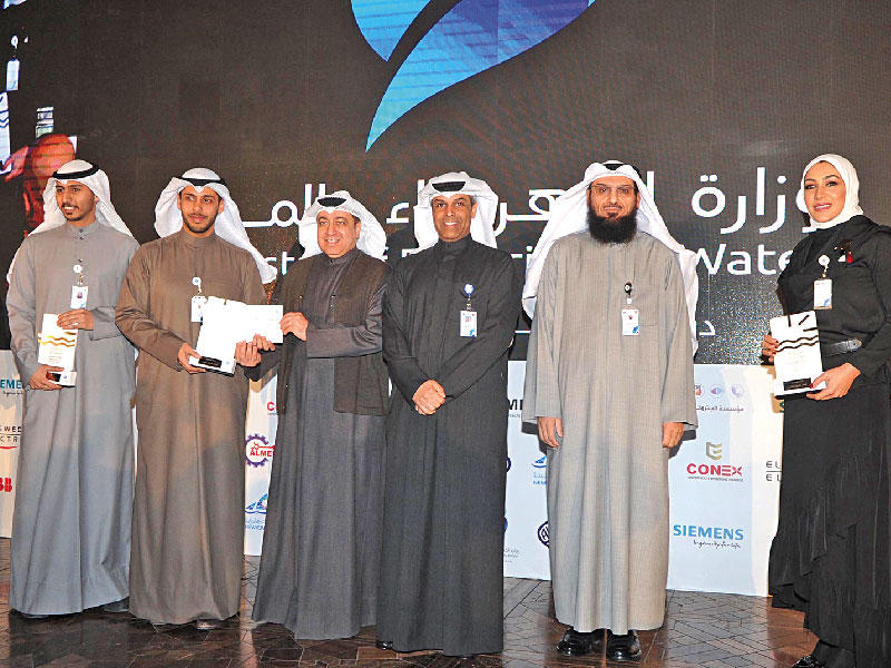 وزير النفط وزير الكهرباء والماء الدكتور خالد الفاضل وبعض المكرمين الفائزين بجائزة "الابتكار والتميز"