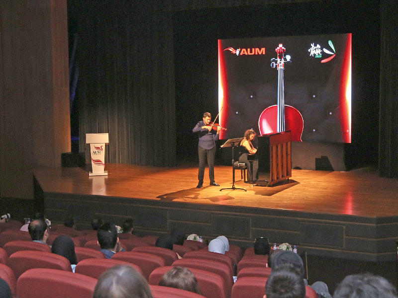 واحتفالاً بالمناسبة، لفتت الجامعة إلى أنها افتتحت أولى فعالياتها بالتعاون مع السفارة الإيطالية ضمن «هلا إيطاليا 2020» في مركزها الثقافي، حيث أقامت أمسيةً موسيقيةً بعنوان «التراث العريق للمدرسة الإيطالية للكمان»، حضرها رئيس الجامعة والسفير الإيطالي وعدد من أعضاء هيئة التدريس وطلاب وموظّفي AUM. وأحيا الحفل الأخوان فرديناندو وأنجيلا تريمـــــاتـــوري المشـــهـــــوران بـ «الثنائي فيديريسشيانو» (DuoFedericiano) من أكاديمية كيجانا الموسيقية التي تُعتبر واحدة من المؤسسات الموسيقية العريقة في إيطاليا.أجواء كلاسيكية
