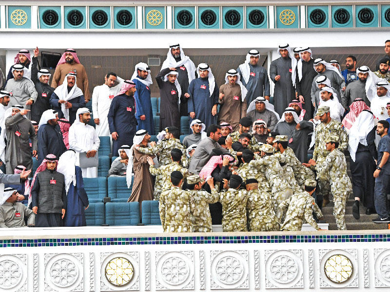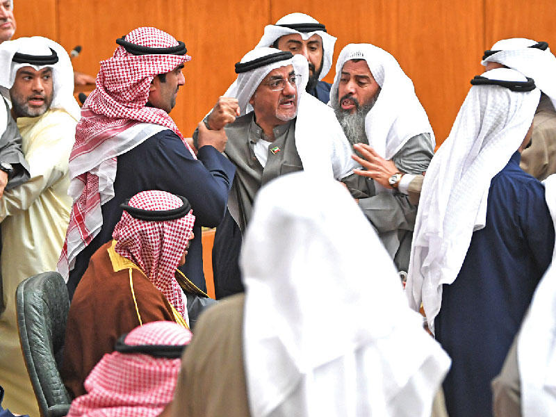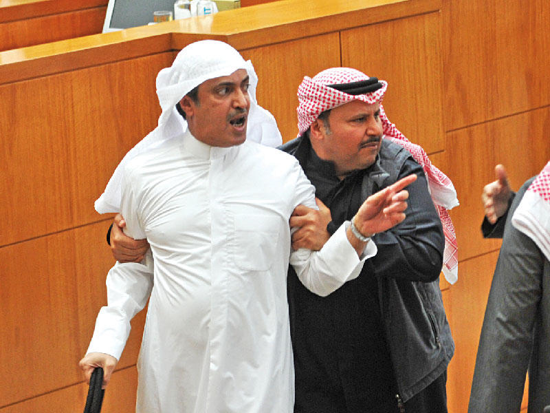 خلال مناقشة تقرير لجنة الشؤون التشريعية والقانونية البرلمانية بشأن المقترحات الأربعة لقانون العفو الشامل، والتي رفضها مجلس الأمة جميعاً من حيث المبدأ، شهدت جلسة المجلس أمس حالة جديدة من المشادات وصلت إلى حد التشابك بالأيدي بين النواب، بعضهم مع بعض من جهة، وبين حرس المجلس والجمهور داخل القاعة من جهة أخرى. وأسقط المجلس المقترحات الأربعة التي تضمنها تقرير "التشريعية"، وتشمل "دخول المجلس" و"خلية العبدلي" و"عبدالحميد دشتي" و"سجناء الرأي والتخابر مع جهات خارجية"، وذلك بعدما قرر الفصل بينها، والتصويت على كل منها على حدة، برفع الأيدي، لينتهي إلى رفضها جميعاً.
