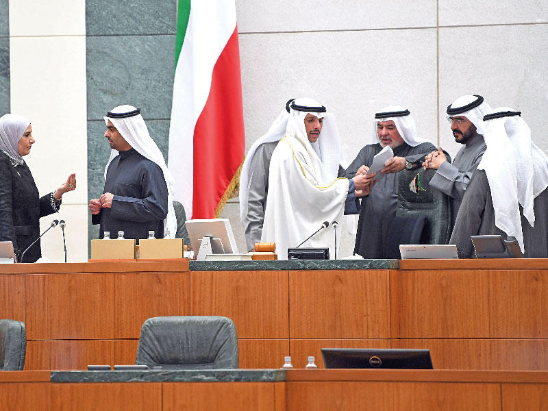 دارت أخيرا عجلة الإنجازات التشريعية في مجلس الأمة خلال جلسته أمس، بعد توقفها طوال دور الانعقاد الحالي، إذ تمكن من إقرار أربعة قوانين دفعة واحدة، ليعتبرها النواب جلسة تاريخية حققت الفائدة للمواطن الكويتي، ووصفوها بجلسة الفرح مقارنة بجلسة أمس الأول.وأنجز المجلس في المداولتين قانون البنك المركزي بما يقضي بإنشاء لجنة للرقابة الشرعية به تكون مهمتها مراقبة البنوك الإسلامية وأحاله إلى الحكومة.وأقر المجلس ثلاثة قوانين في المداولة الأولى على أن ينجزها في المداولة الثانية الجلسة المقبلة المقررة ١٠ مارس وهي «التوثيق» وإعادة التماس النظر في أحكام التمييز و«تنظيم القضاء» الذي تضمن مخاصمة القضاة.