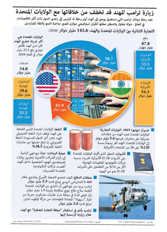 ترامب ينهي زيارة للهند بلا اتفاق تجارة أو إنجازات كبيرة