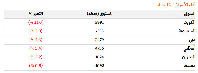 تراجع جماعي لمؤشرات الأسواق الخليجية بسبب «كورونا»