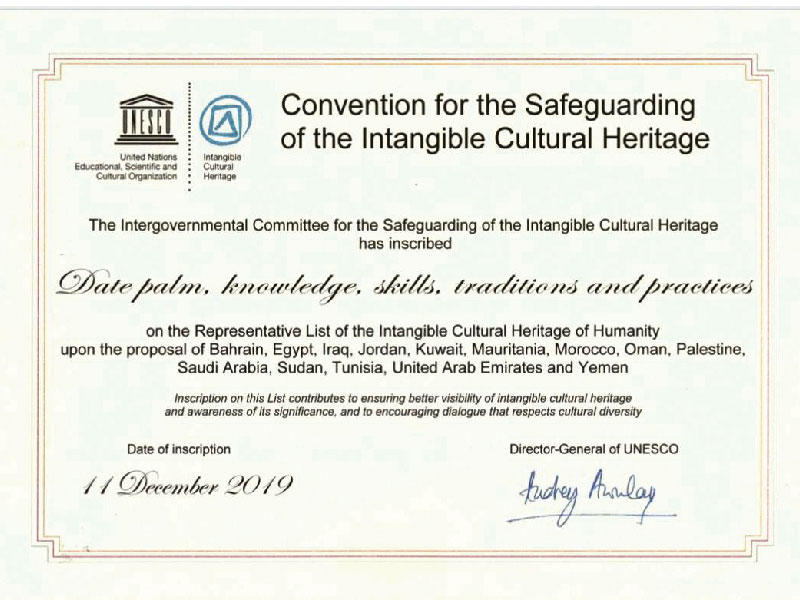 وأضاف أن المجلس الوطني للثقافة سيمضي قدما لتقديم ملفات جديدة للمنظمة الدولية، تحتوي على مفردات أخرى يختص بها المجتمع الكويتي الذي ينفرد بالعديد من المواقع التاريخية والأثرية والسلوكيات الاجتماعية الحضارية الفريدة والفنون المختلفة التي نبعت من أرض الكويت وتميز بها السكان في انماط الحياة والتعايش الإنساني. يذكر أن دول البحرين ومصر والعراق وإيران والكويت وموريتانيا والمغرب وعمان وفلسطين والسعودية والسودان وتونس والإمارات واليمن ساهمت في تسجيل "النخلة" لدى اللجنة الحكومية الدولية لحماية التراث الثقافي غير المادي.