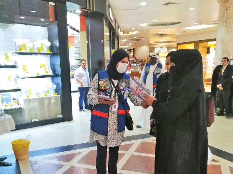 في هذا الإطار، بدأ متطوعو محافظة الأحمدي توزيع عدد كبير من "الرول أب" و"البروشورات" باللغتين العربية والإنكليزية على رواد المجمعات التجارية والجمعيات التعاونية والمرافق والإدارات الحكومية كالمرور وشؤون الإقامة ومراكز خدمة المواطن وغيرها من القطاعات التي تتعامل مع المراجعين من المواطنين والمقيمين، ووجدوا التفاعل الكبير والتجاوب والحرص من الجميع على التزود بالمعلومات الوقائية من هذا المرض.