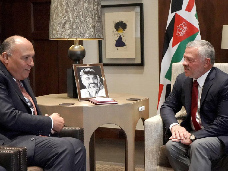 استقبل العاهل الأردني الملك عبدالله الثاني أمس، في عمّان، وزير الخارجية المصري سامح شكري، الذي بدأ جولة عربية وصفتها مصادر مصرية بأنها بالغة الأهمية لـ «تجميع الصفوف قبل أن تصعّد القاهرة ضد إثيوبيا». وتشمل جولة شكري بعد الأردن، المملكة العربية السعودية، والعراق، والكويت، وسلطنة عُمان، والبحرين، والإمارات، لتسليم رسائل من الرئيس السيسي إلى قادة تلك الدول. وكشف مصدر مطلع أن القاهرة تعتزم التصعيد أمام المنظمات الدولية، بعد انسحاب أديس أبابا من المفاوضات الخاصة بسد النهضة الإثيوبي، وتعمل على أن يكون هذا بتنسيق عربي كامل.
